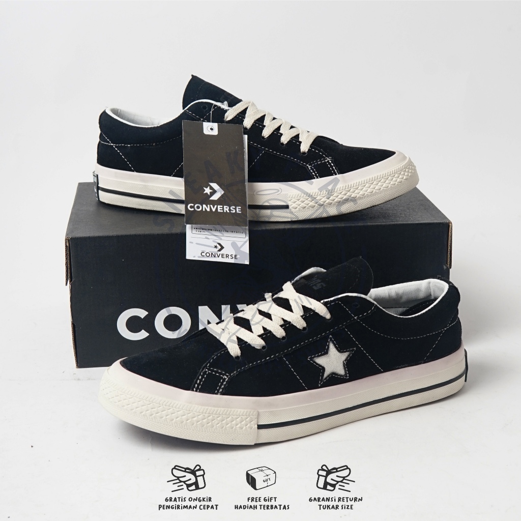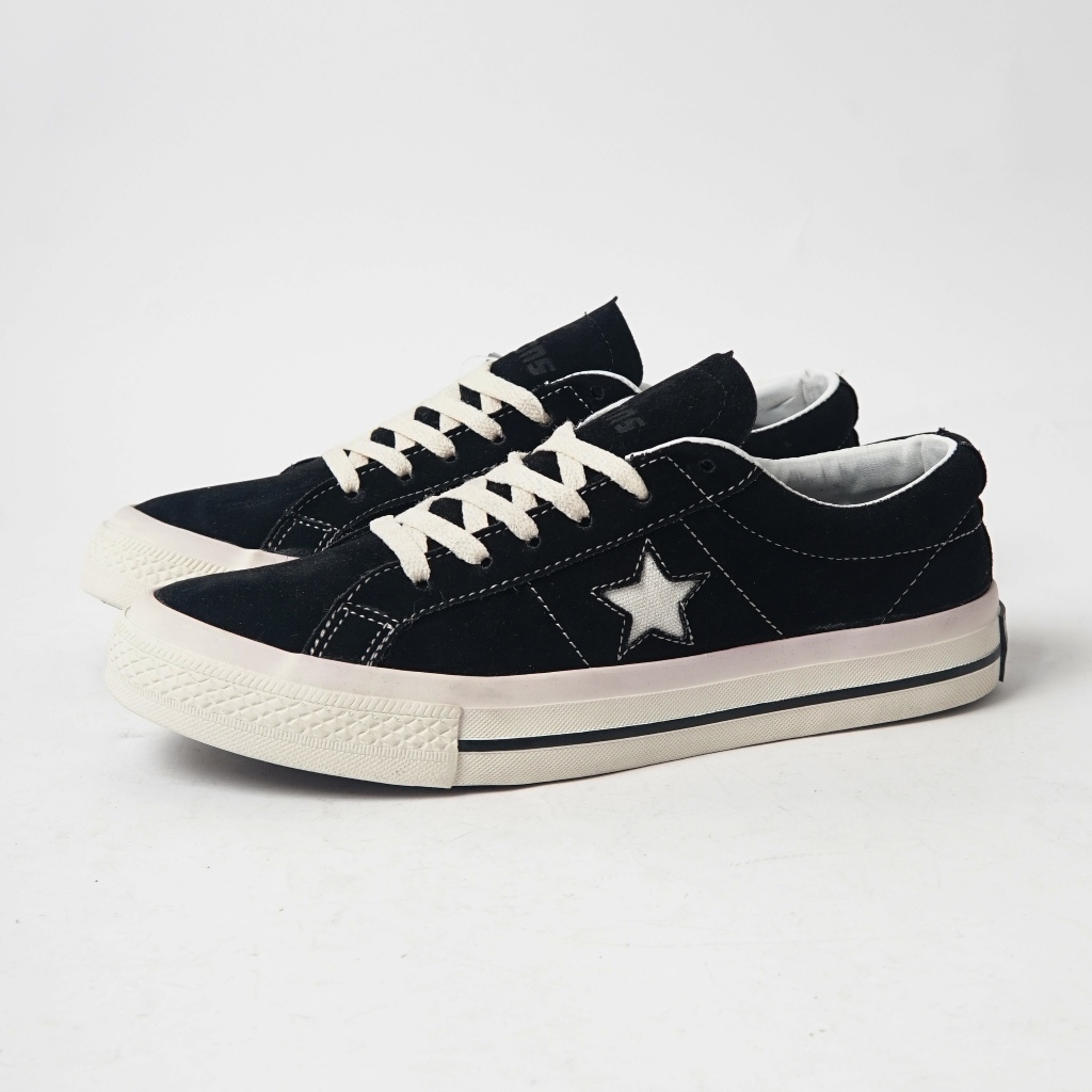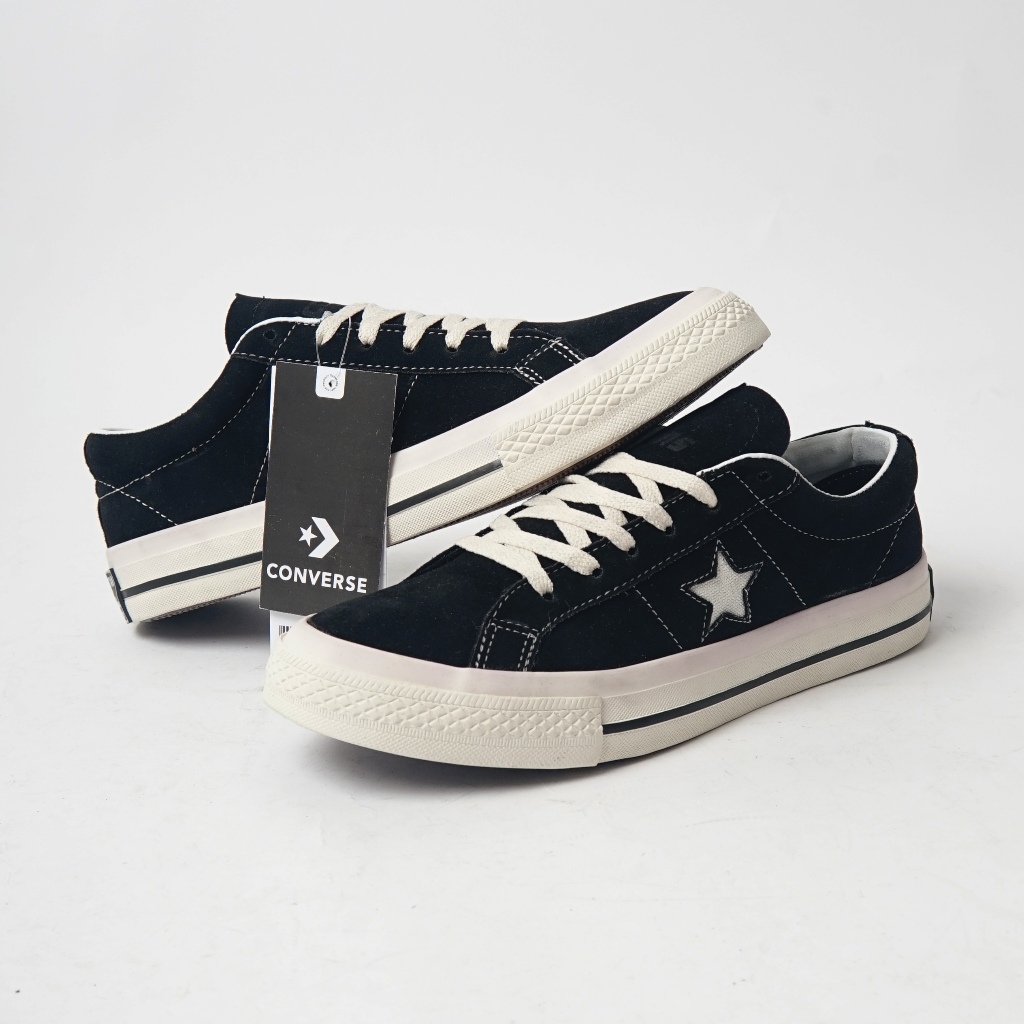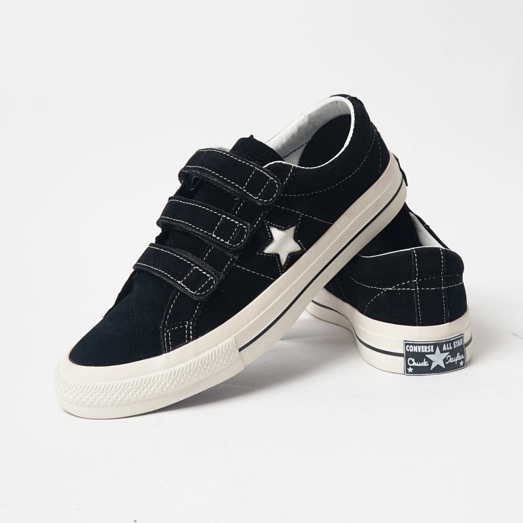 Sneaky Place - Sepatu Sneakers One Star Unisex Low Cut Hitam Putih Model Tali & Velcro Untuk Sekolah