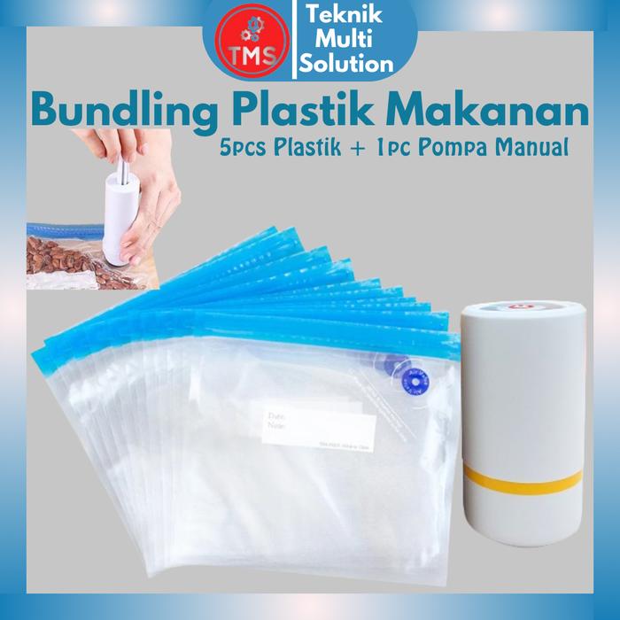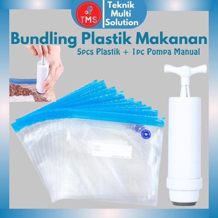 FLASH SALE PAKET TERMURAH 5PCS PLASTIK MAKANAN 1PC POMPA VACUUM VAKUM MAKANAN BPA REE DIPAKAI BERULANG SET MKNN MANUAL