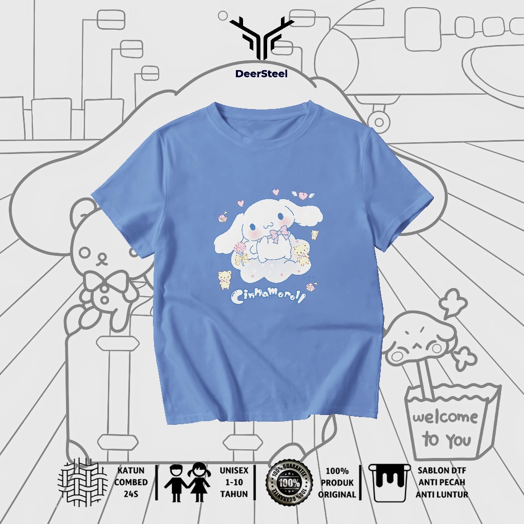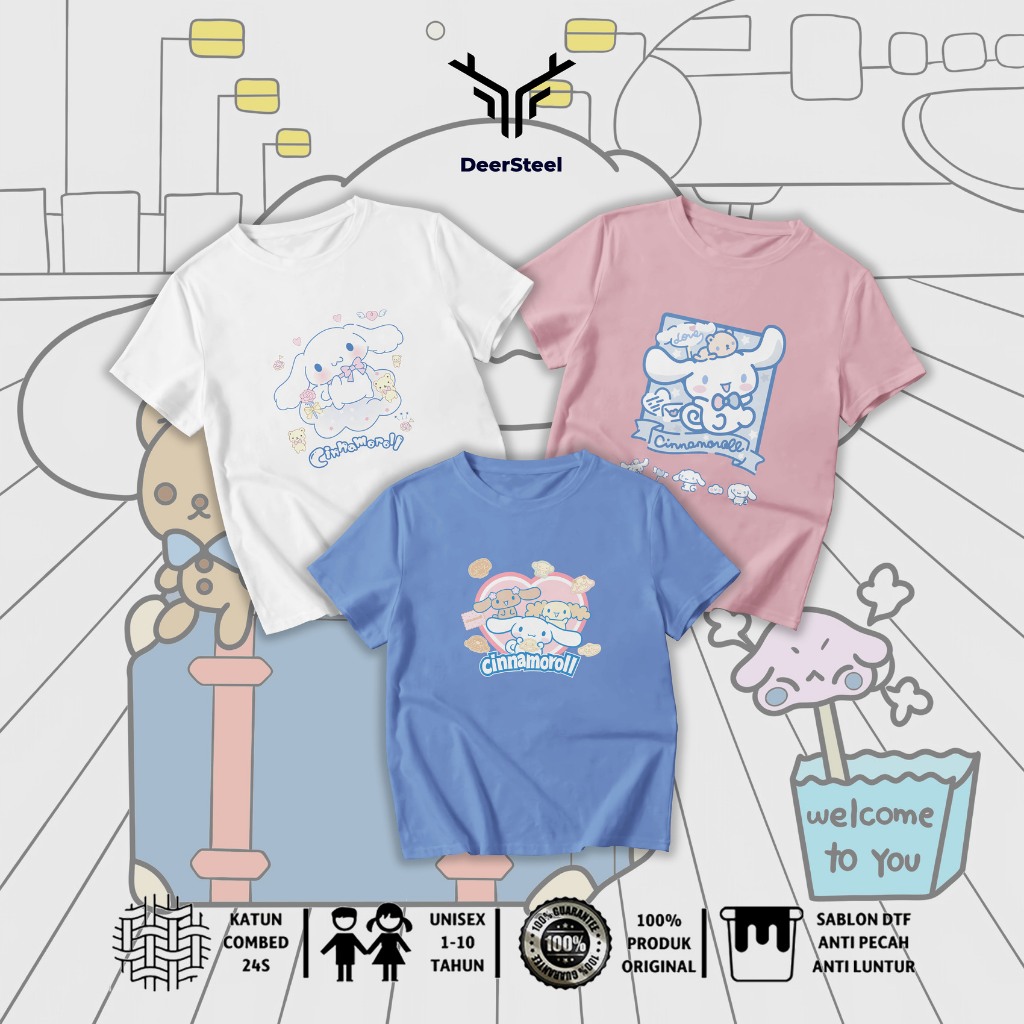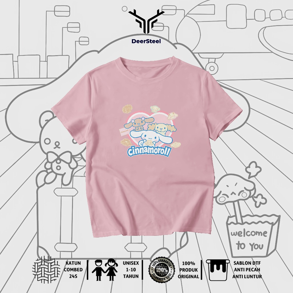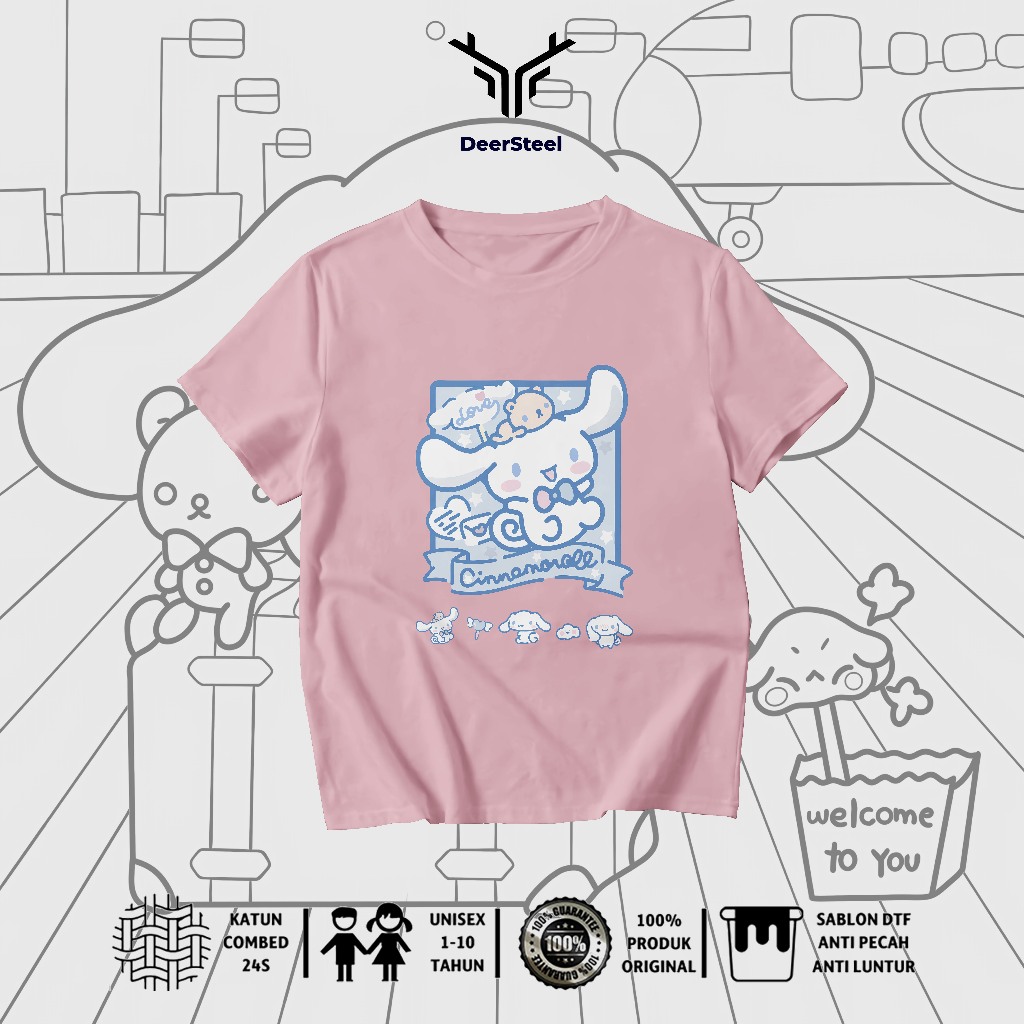DEERSTEEL KAOS ANAK COTTON COMBED 24S DESAIN CINAMOROLL PEREMPUAN USIA 1 - 8 TAHUN