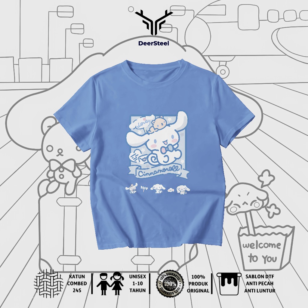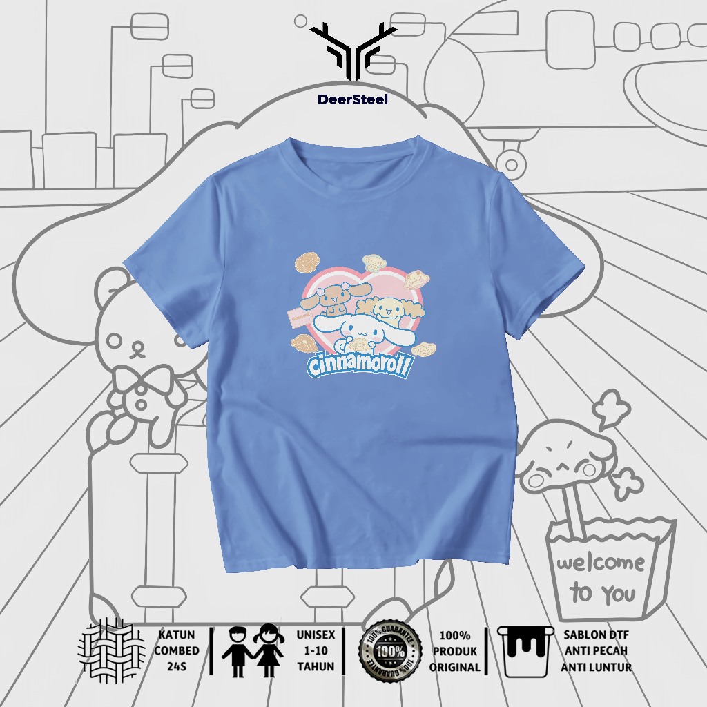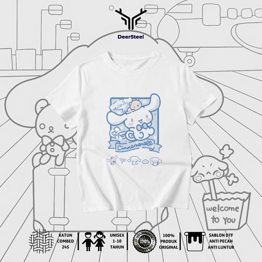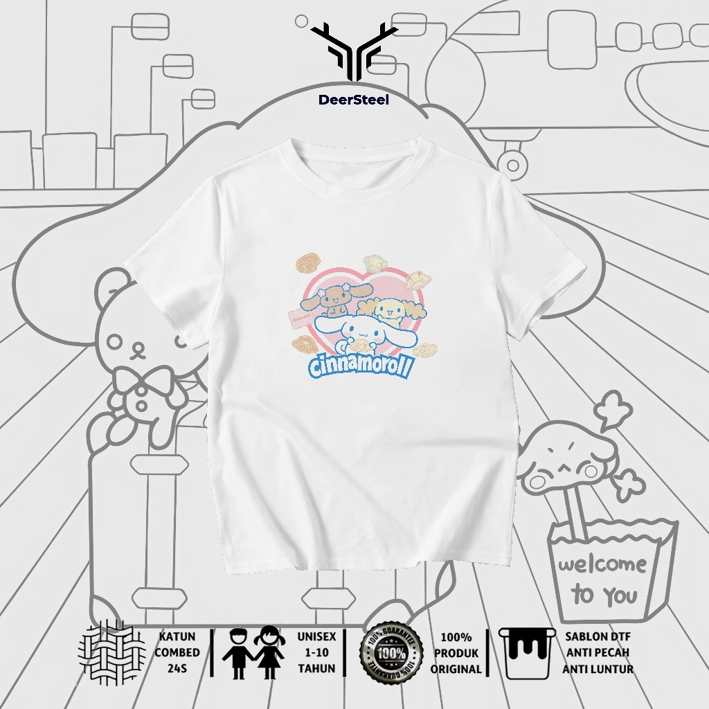 DEERSTEEL KAOS ANAK COTTON COMBED 24S DESAIN CINAMOROLL PEREMPUAN USIA 1 - 8 TAHUN