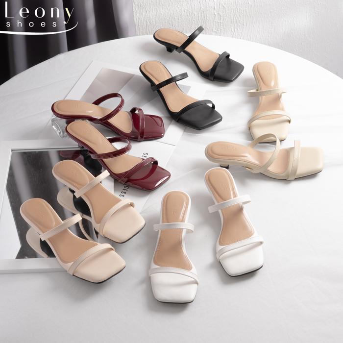 PROMO TERBATAS LEONYGWEN SANDAL HAK PENDEK WANITASENDAL KITTEN HEELS 3 CMBURGUNDY 37
