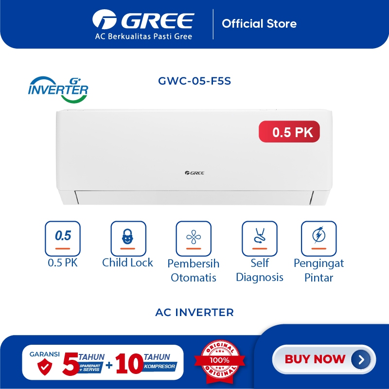 GREE AC F5S SERIES - INVERTER 0.5 PK - GWC-05F5(S) - WHITE PEARL (Unit Indoor & Outdoor)