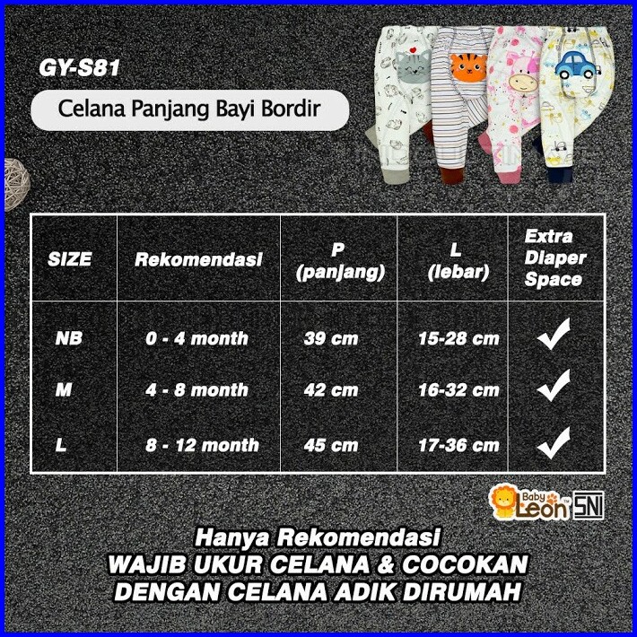 Babyleon Celana Bayi 0-1th Celana Bayi Bordir Newborn Gy-s81 Celana Diaper Celana Popok Celana Panjang Anak