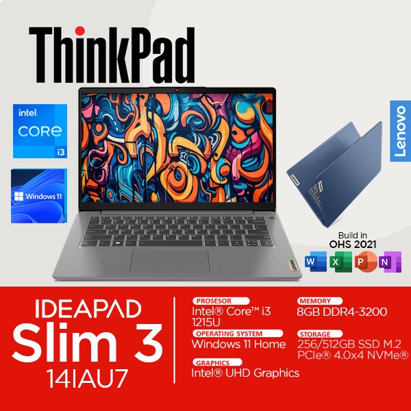 Lenovo Ideapad Slim 3i Core i3 1215U 8GB RAM 512GB SSD Windows 11 OHS 14 inch Full HD 14IAU7 1215
