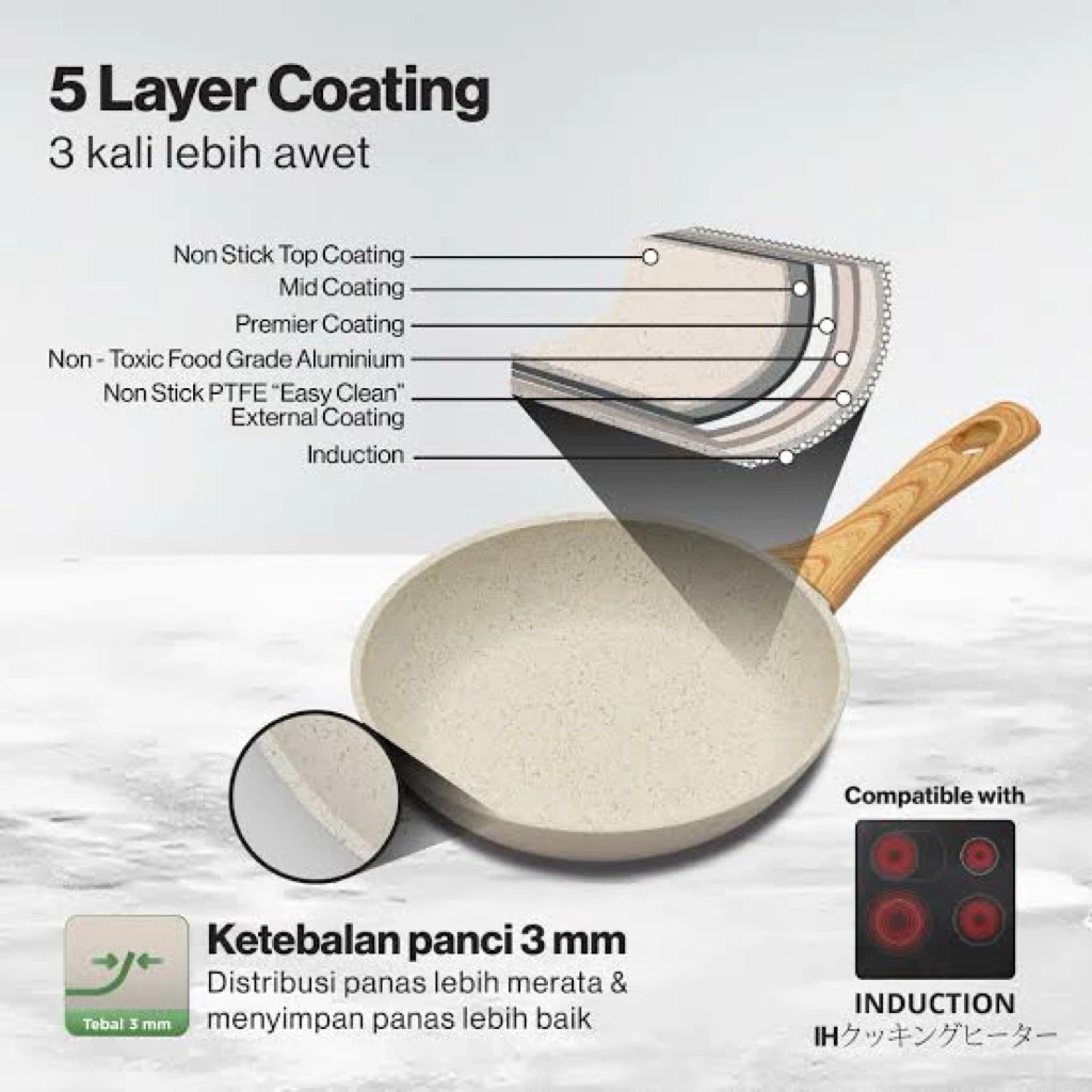 Miyako Deep Frypan Beige 18CM-28CM / Wajan Penggorengan anti lengket Miyako