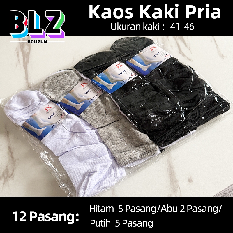 BOLIZUN Kaos Kaki Pria 12 PASANG Kaos kaki Cowok/Ukuran kaki 41-46 Warna Polos