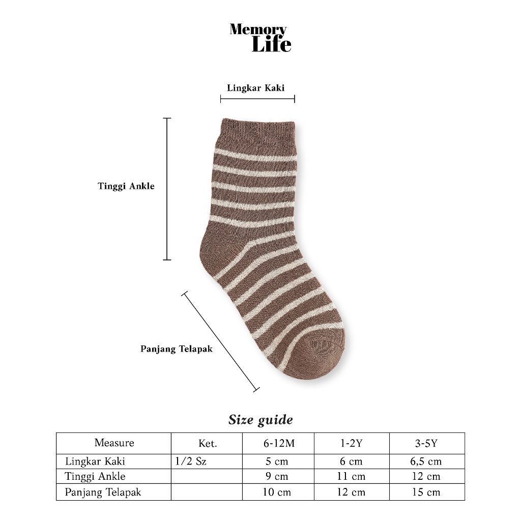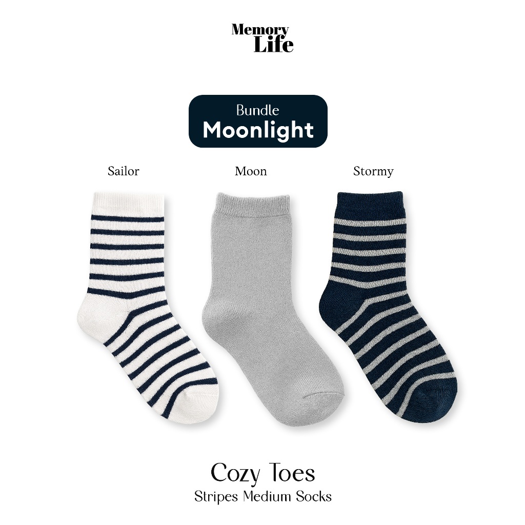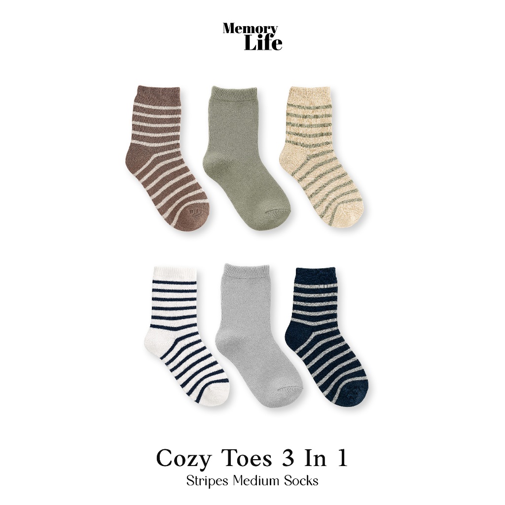 MemoryLife - Cozy Toes 3 in 1 | Kaos Kaki Bundle Isi 3 Pasang | Stripes Medium Socks | Kaos Kaki Bayi 6 Bulan - 5 Tahun