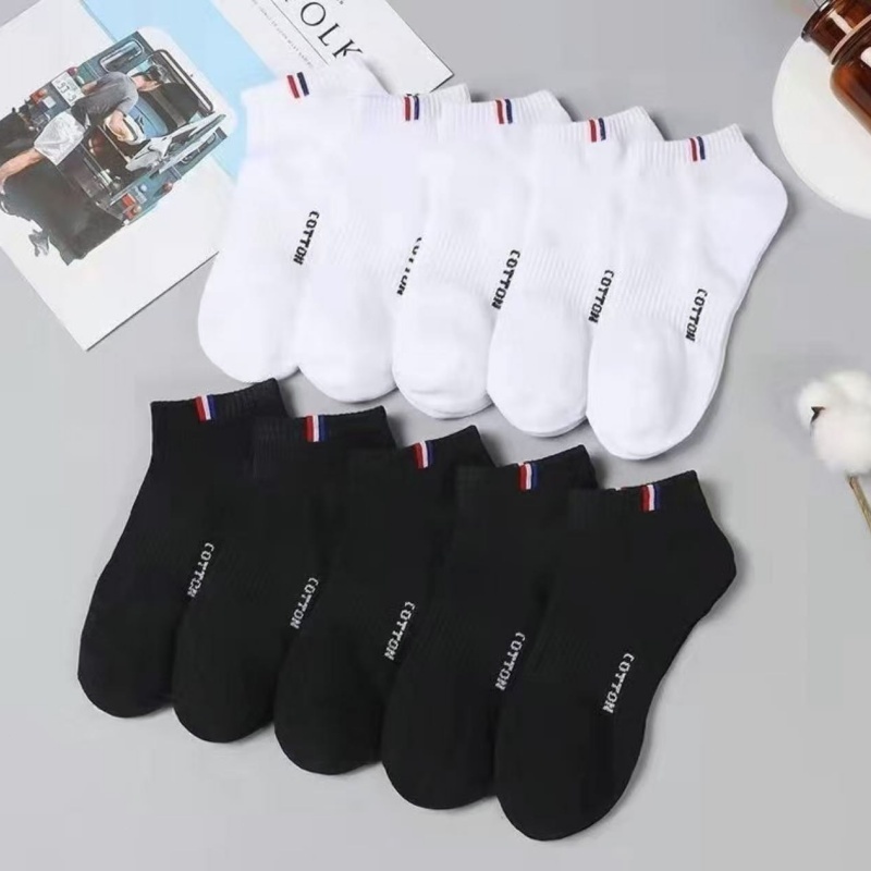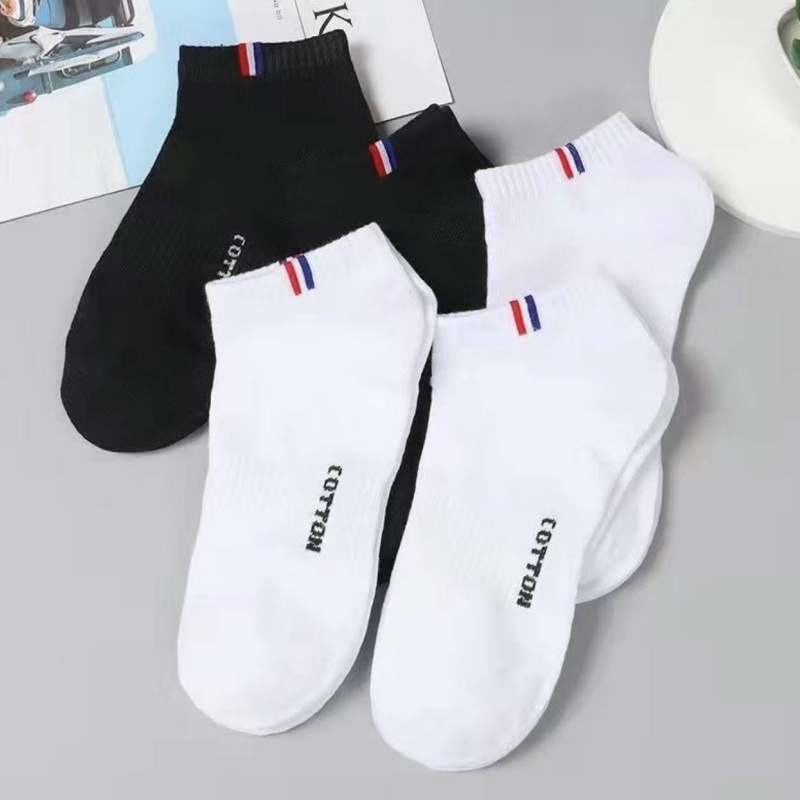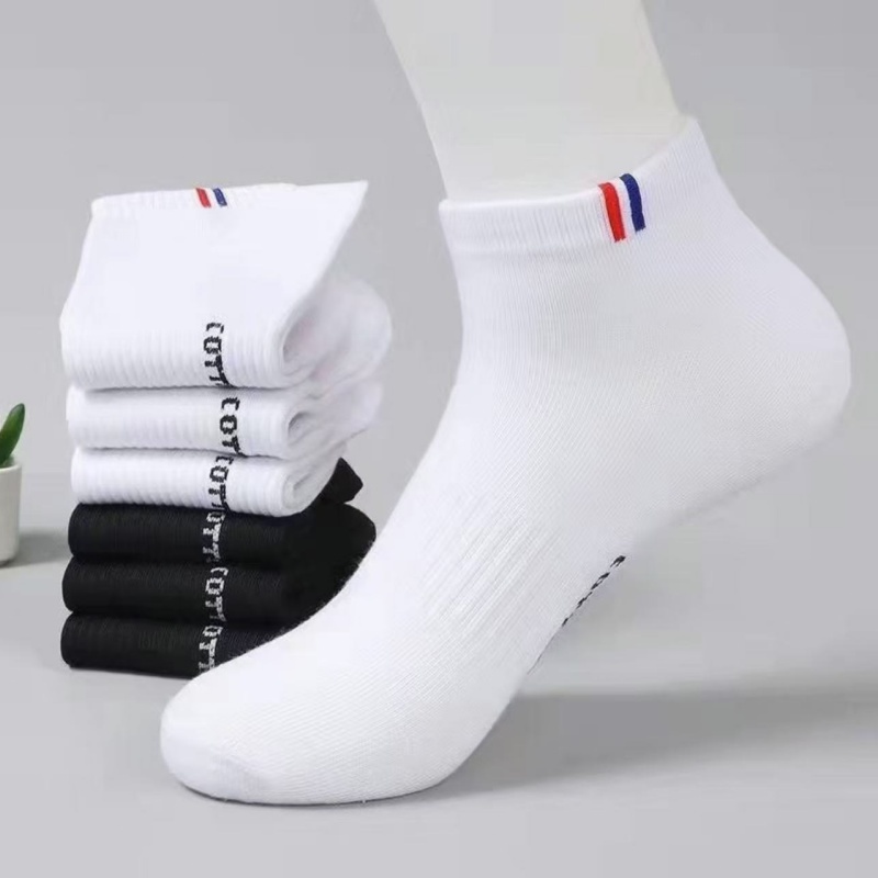 Kaus kaki Kaus kaki katun pria, potong dangkal, putih sederhana, hitam, mode menyerap keringat