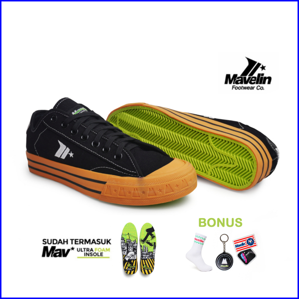 Mavelin Nitro Low Black Gum - Sepatu Sneakers Casual Pria Wanita