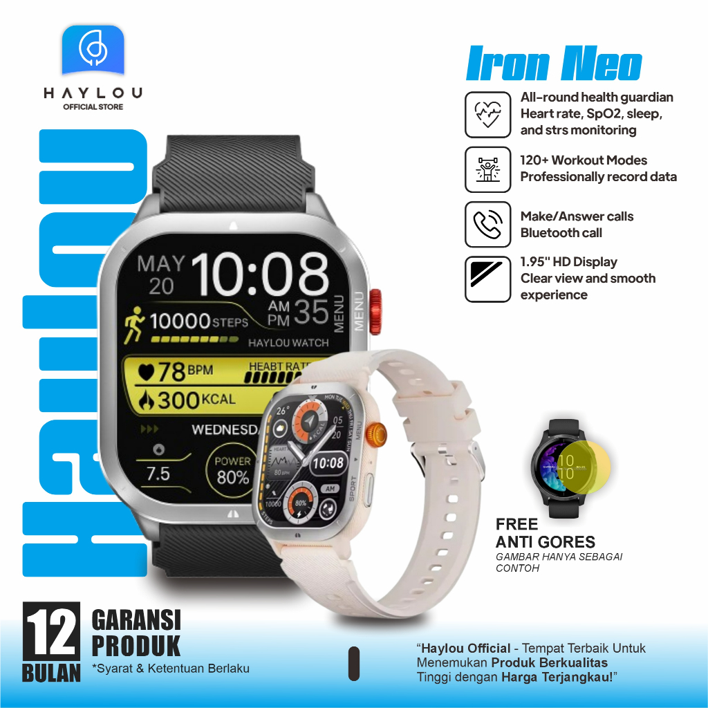 Haylou Iron Neo Smartwatch Bluetooth Call Layar 1.95” HD Health Monitor Long Battery