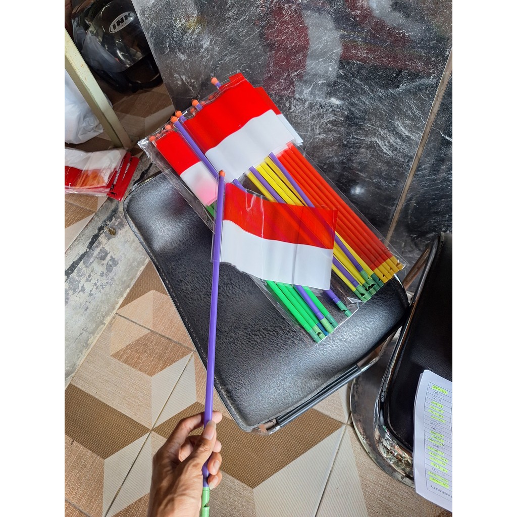 [100gr] T916 | Bendera Plastik Tongkat Tangkai Pluit Merah Putih 17an Agustusan 20 PCS