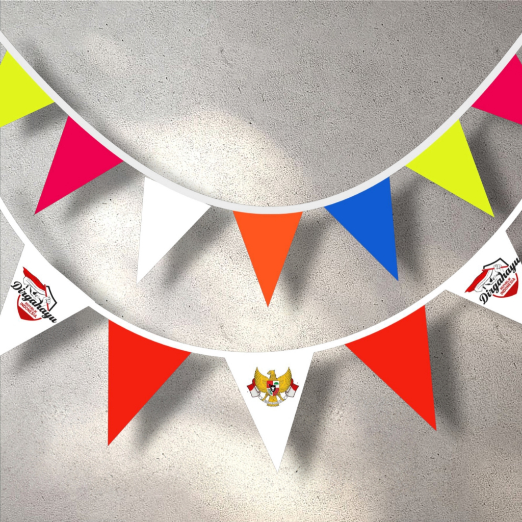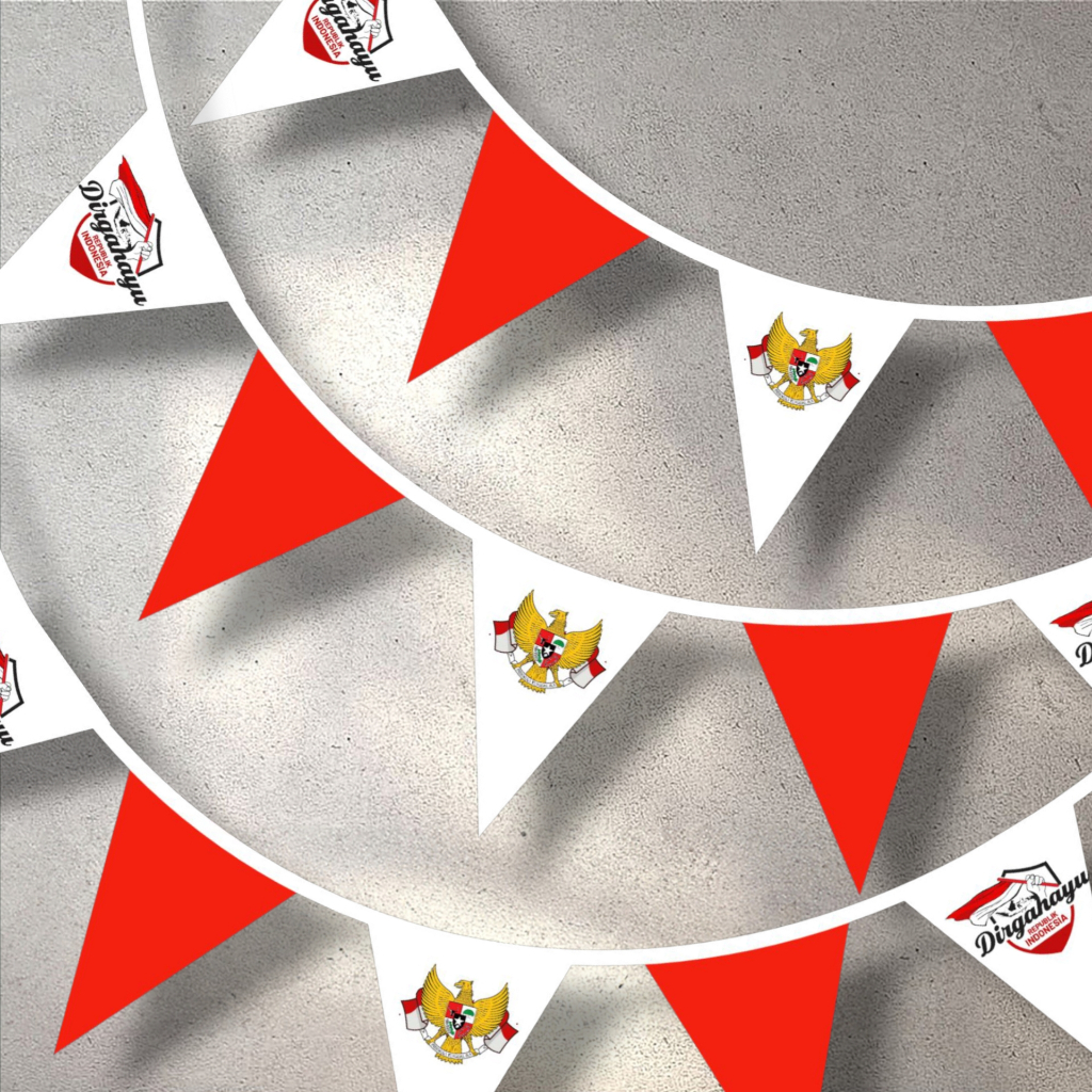Bendera Merah Putih HUT RI 17 Agustus Dirgahayu Indonesia Umbul umbul logo Garuda Bunting Flag model Segitiga Panjang 5