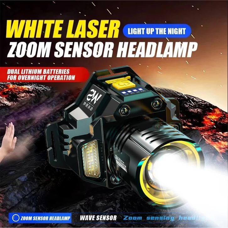 Headlamp outdoor LED 500W Senter kepala Zoom Waterproof USB Rechargeable WS-8663 dual sensor gerakan Multifungsi untuk C
