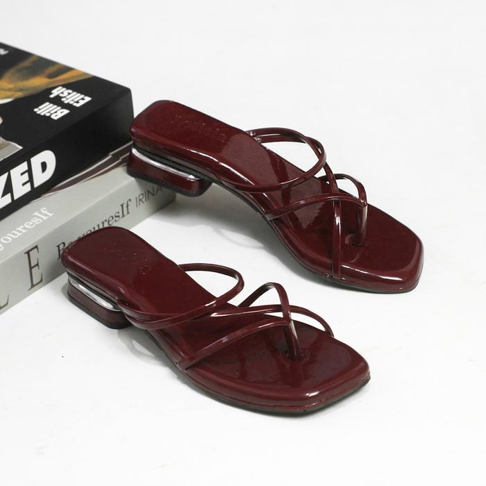 PROMO TERBATAS LEONY RACHEL HEELS SANDAL WANITA 3 CMSENDAL TINGGI CEWE SLIP ON PEREMPUANHITAM 37