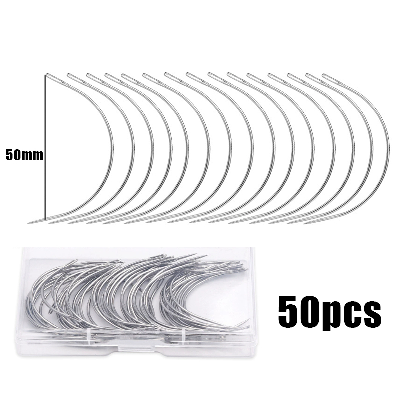 50pcs Curve Needle Jarum lengkung Jahit Tangan Bentuk C Jarum Jahit Jok Jarum Tangan Set Untuk Jahit Bahan Kulit