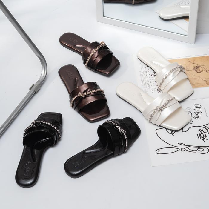 PROMO TERBATAS LEONY JULY SANDAL FLAT WANITASENDAL TEPLEK TALI DIAMONDHITAM 36