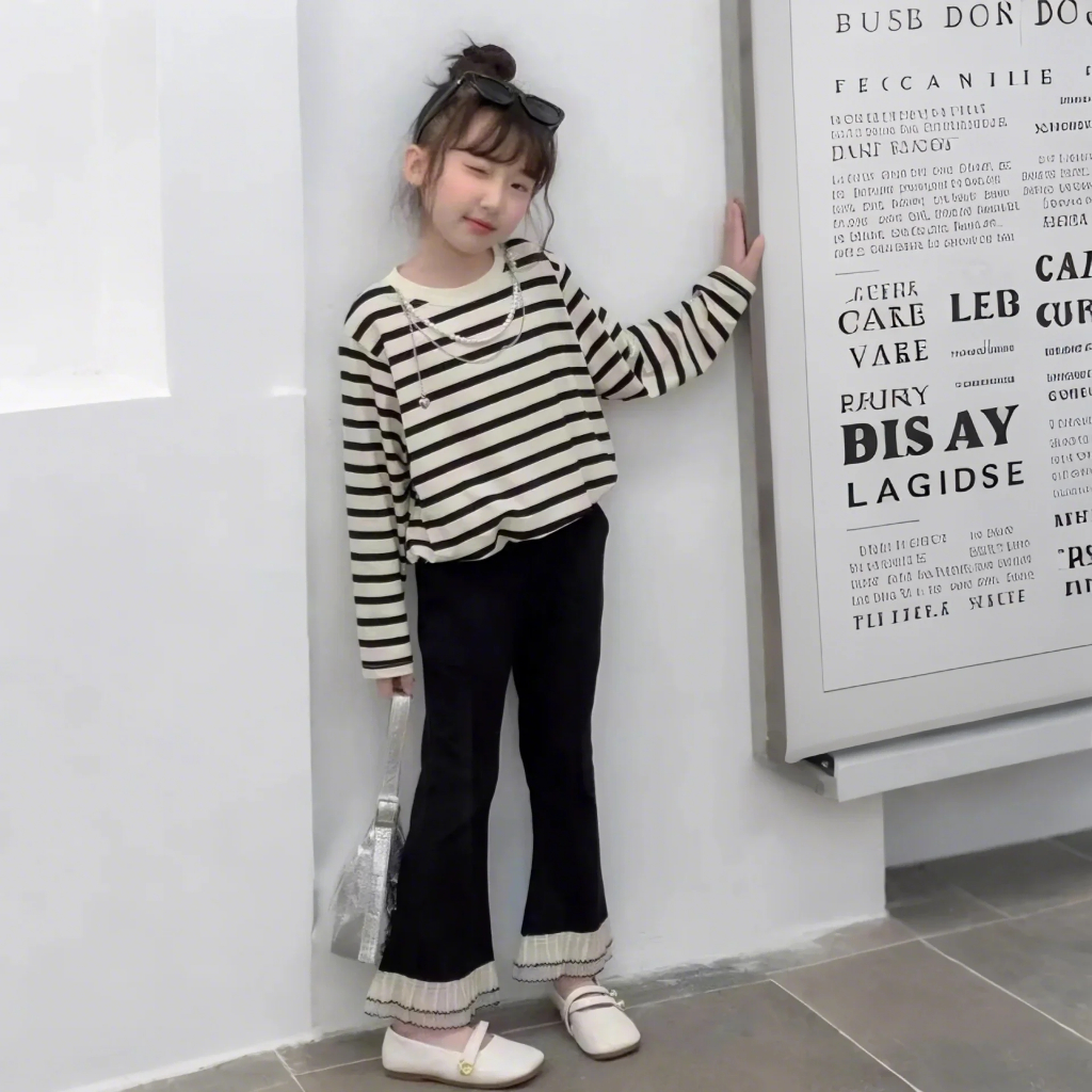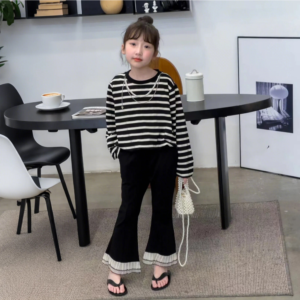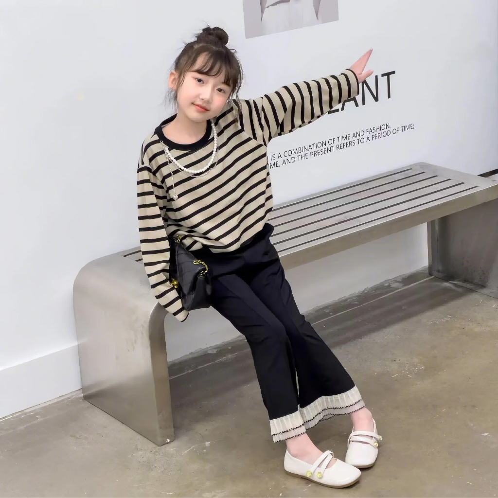 BALALE- SETELAN ANAK PEREMPUAN 4-9 TAHUN ATASAN BERGARIS RAJUTAN & CELANA MELEBAR