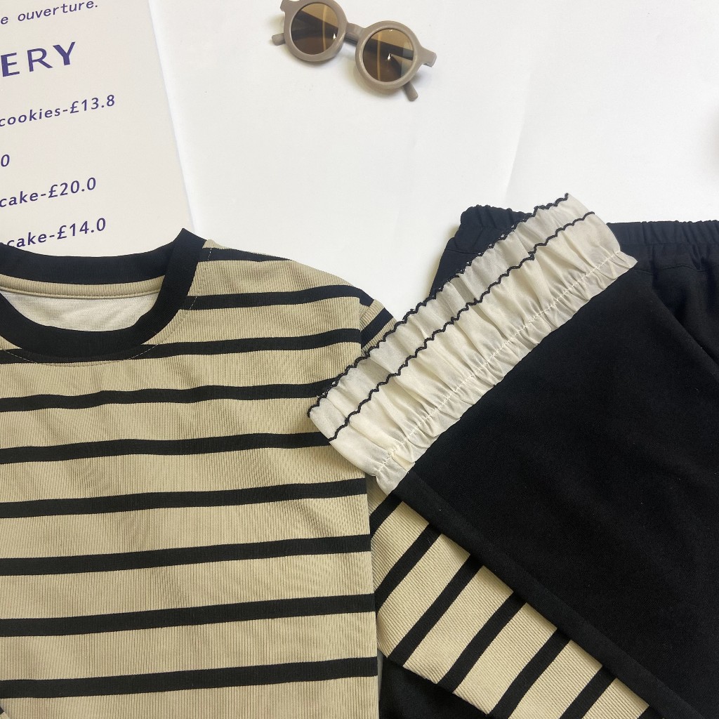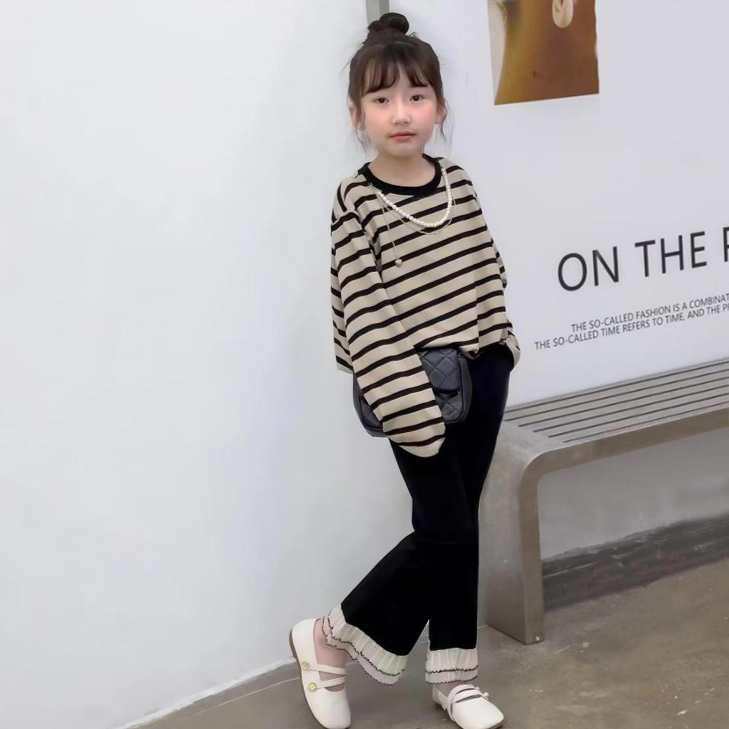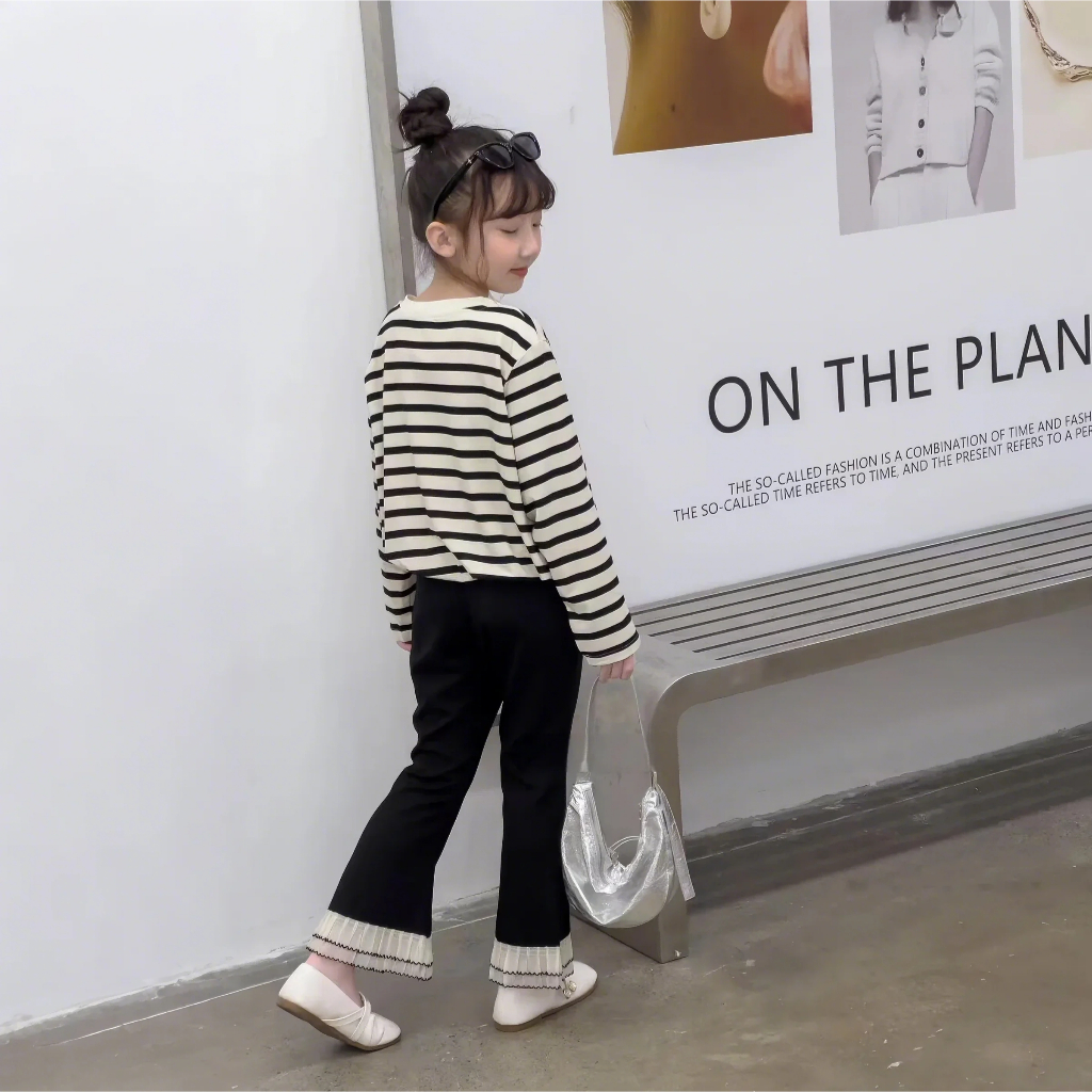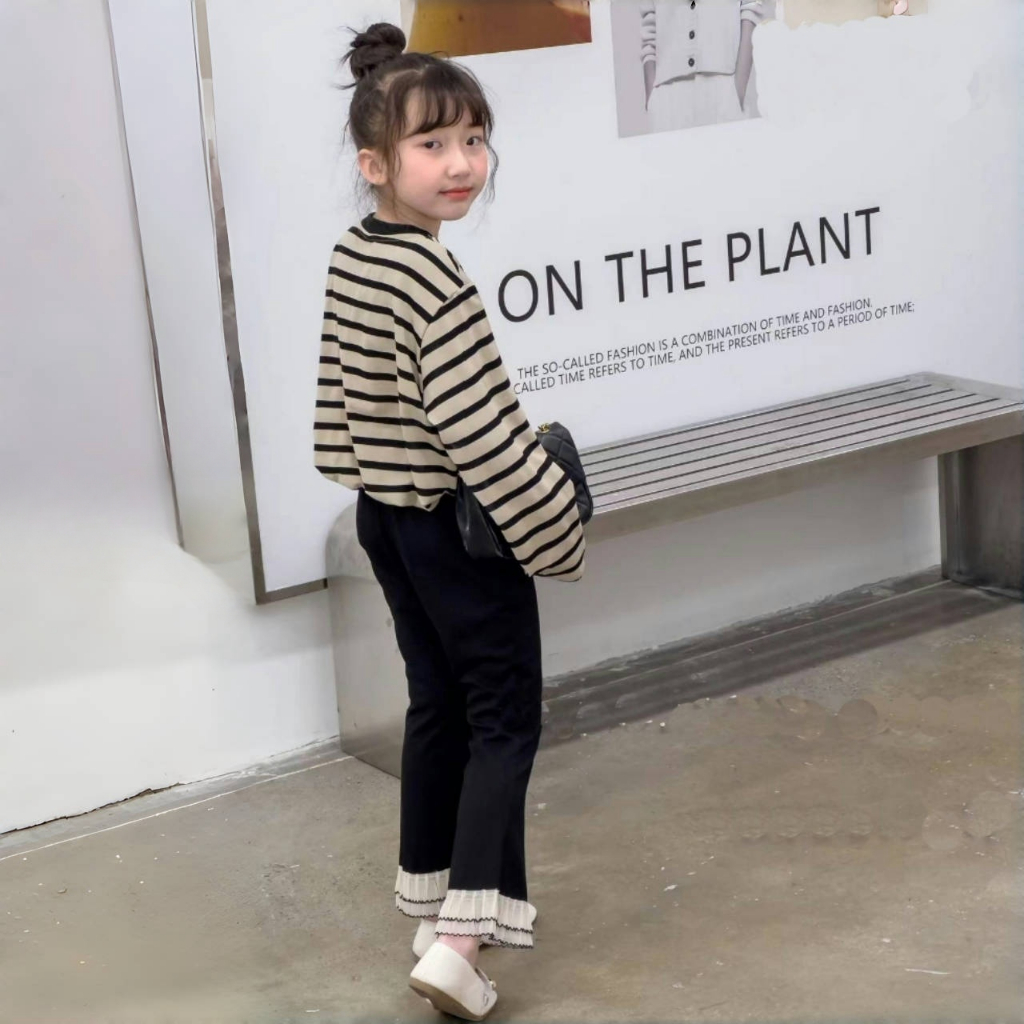 BALALE- SETELAN ANAK PEREMPUAN 4-9 TAHUN ATASAN BERGARIS RAJUTAN & CELANA MELEBAR