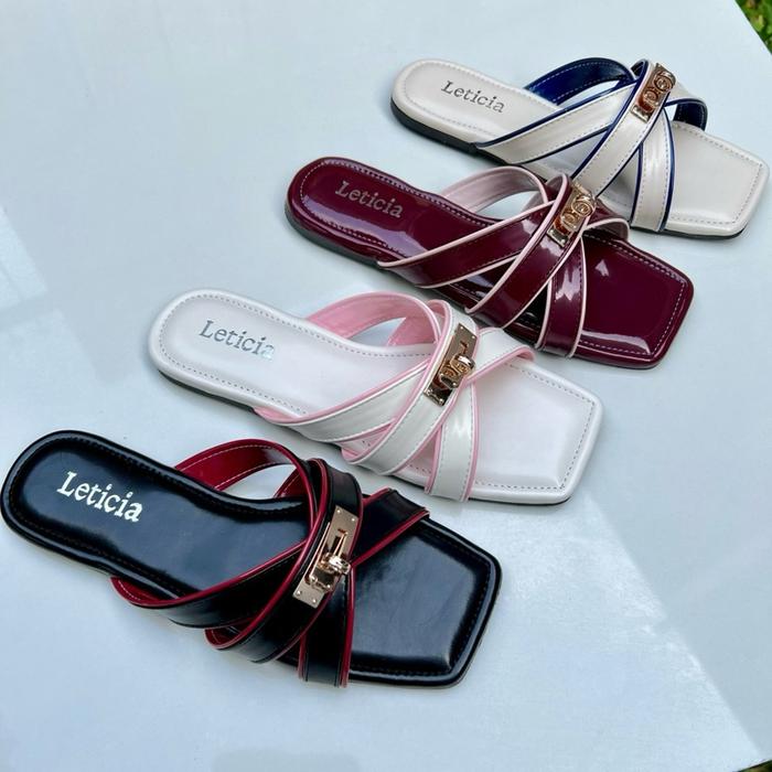 PROMO TERBATAS LEONY PATRICIA SANDAL FLAT WANITASENDAL PEREMPUAN TEPLEK SLIP ON KEKINIAN TERBARUHITAM 36
