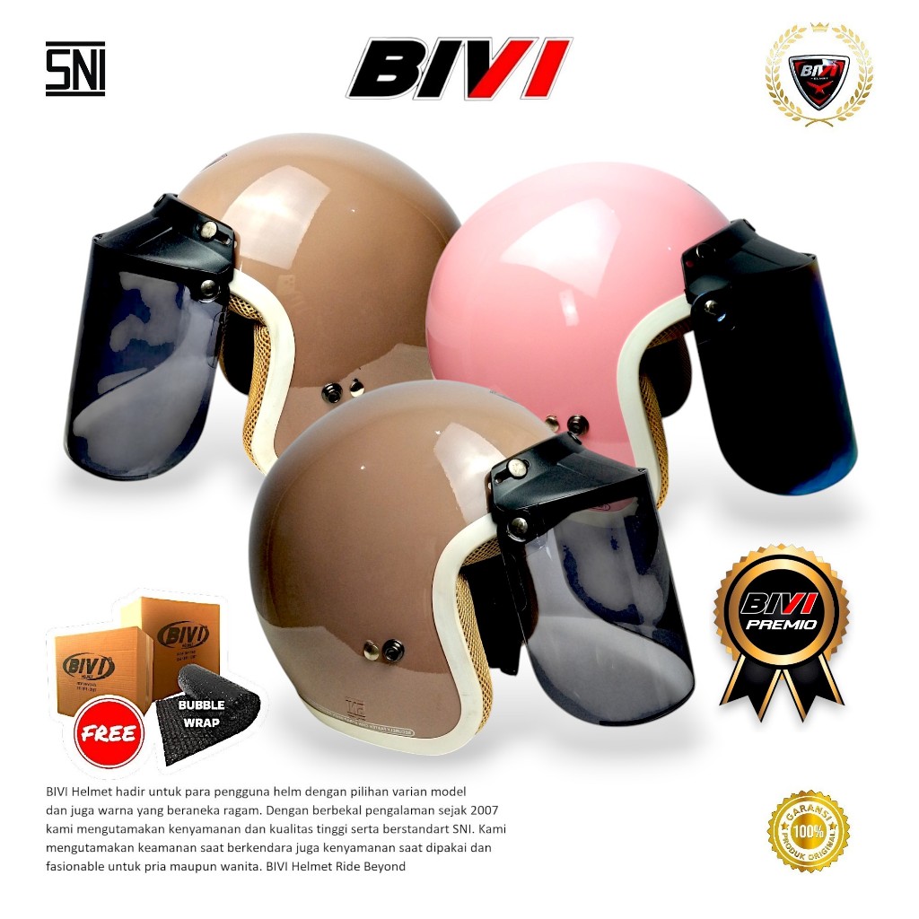 HELM BIVI PREMIO BOGO LIST PUTIH POLOS HIJAB WANITA RETRO HALF FACE + KACA SNI