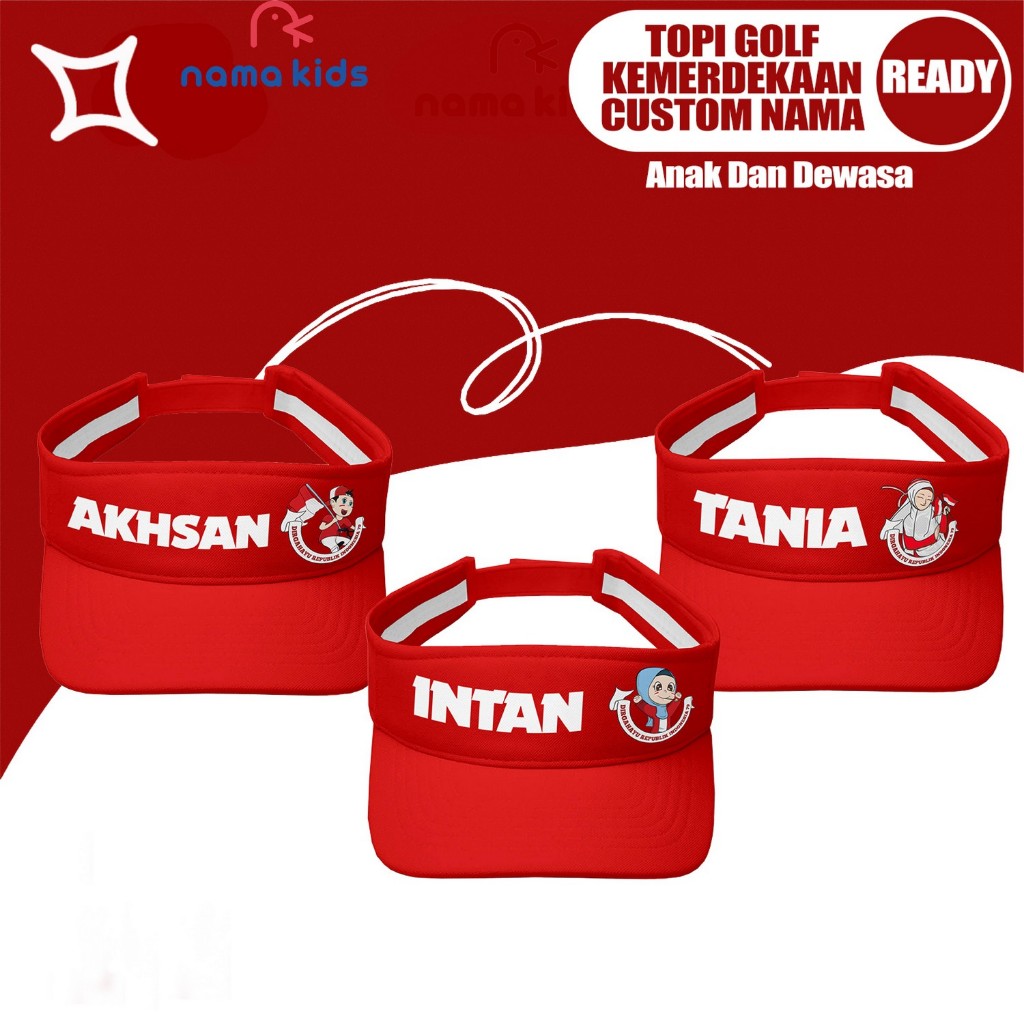 Topi Golf Costum Nama Topi Golf Anak dan Dewasa Tema Kemerdekaan HUT RI Indonesia Topi Sport Olahraga Sablopn Nama Kemer