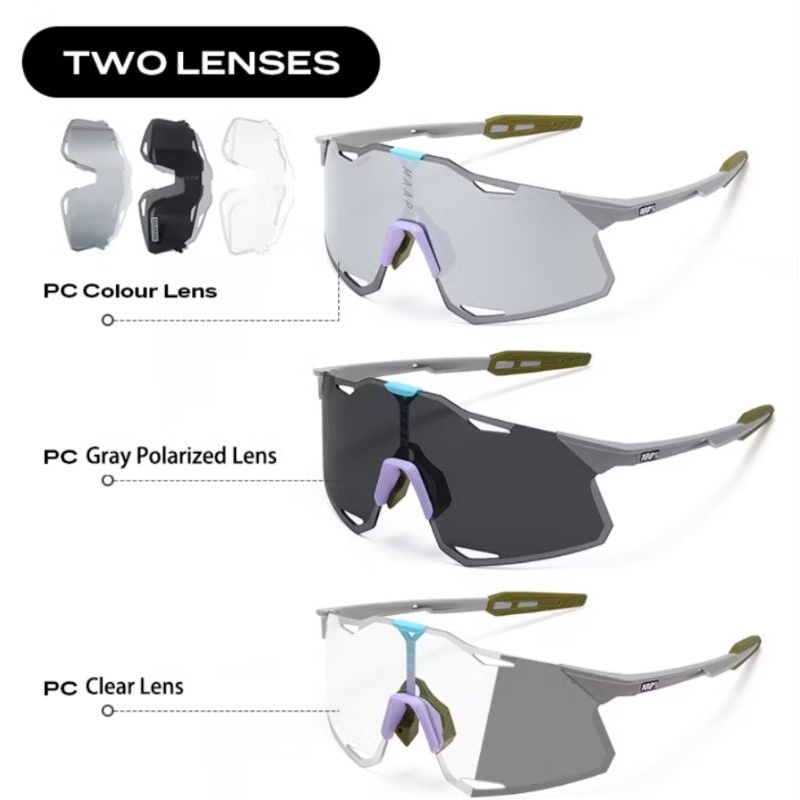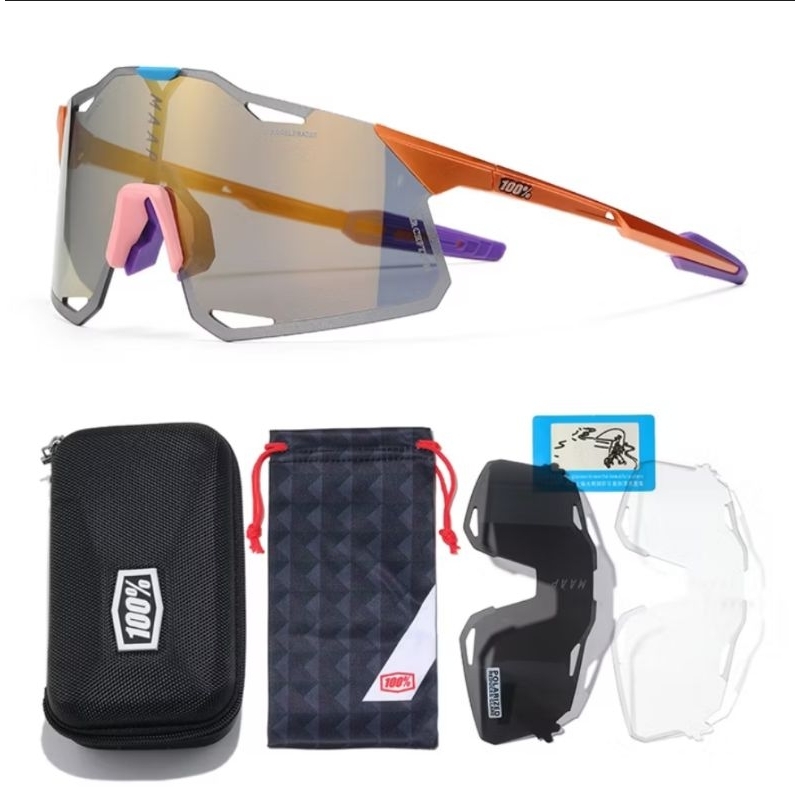 Kacamata Olahraga HyperCr@ft M**P 100% Cycling Sepeda Running Gowes Mancing Polarized 3 Lensa Import High Quality