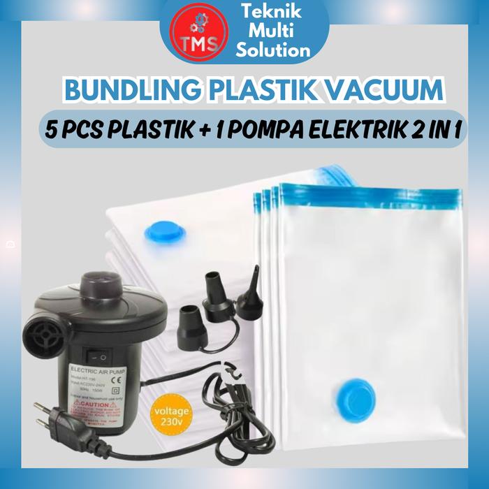 FLASH SALE TMS PAKET TRAVELING 5 PLASTIK VACUUM VAKUM BAJU VACUUM BAG POMPA ANGIN LISTRIK 2 IN 1 TRAVEL BAG POMPA SAJA