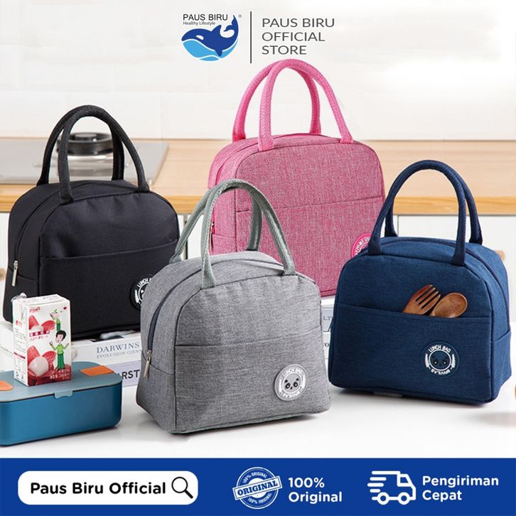 GROSIR Paus Biru - Tas Bekal Lunch Bag Kotak Makan Siang Kain Oxford Tebal Aluminium Foil Tahan Air Anak afehc