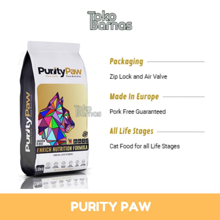 Purity Paw Chicken & Rice 10 Kg Dry Food For All Life Stages Makanan Kering Kucing