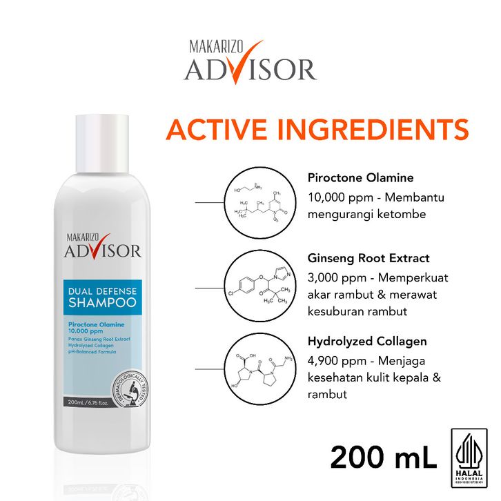 shampoo non sls MFI - Makarizo Advisor Clinical Shampoo Dual Defense Shampoo | Netto 200ml | Shampoo Rambut Rontok dan