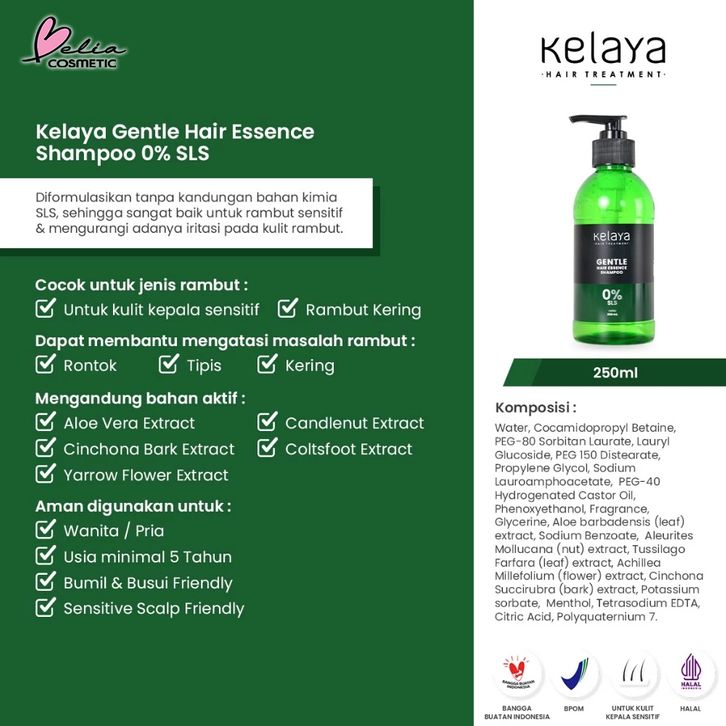 shampoo non sls ❤ BELIA ❤ Kelaya Gentle Hair Essence Shampoo Non SLS 250ml - Shampo Rontok Untuk Rambut Sensitif