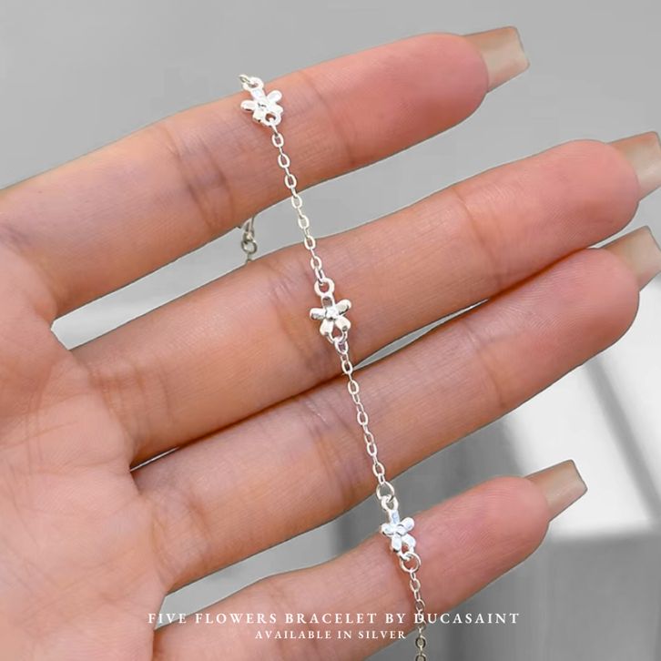 Five Flowers Bracelet | 925 Sterling Silver Perak All Size Gelag Bunga Anti Karat Hypoallergenic