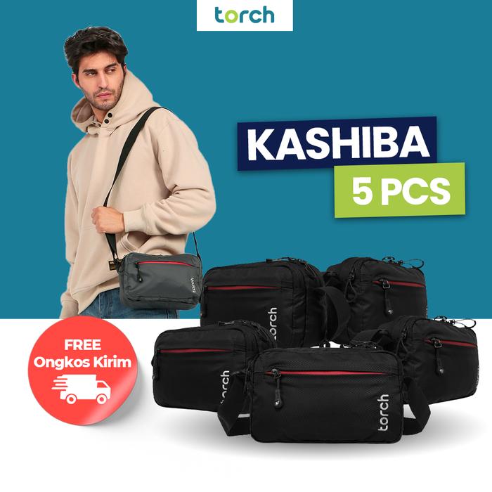 Torch Tas Selempang Bahu Pria Wanita - Travel Pouch Sling Bag Kashiba - Hitam Isi 5