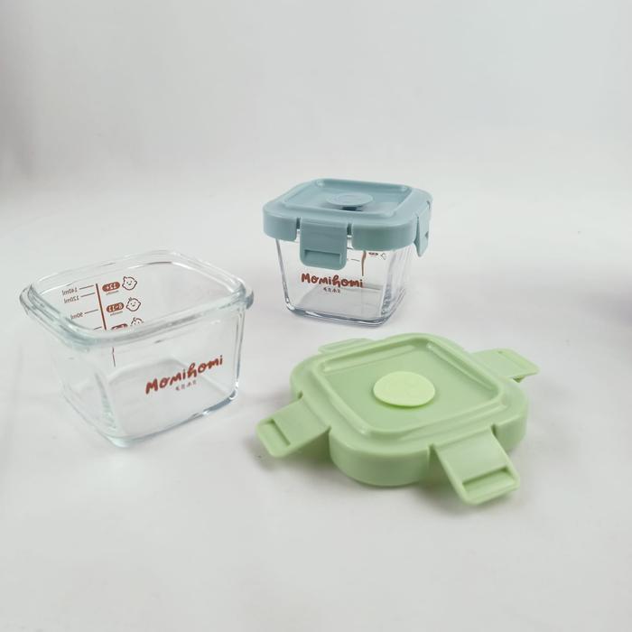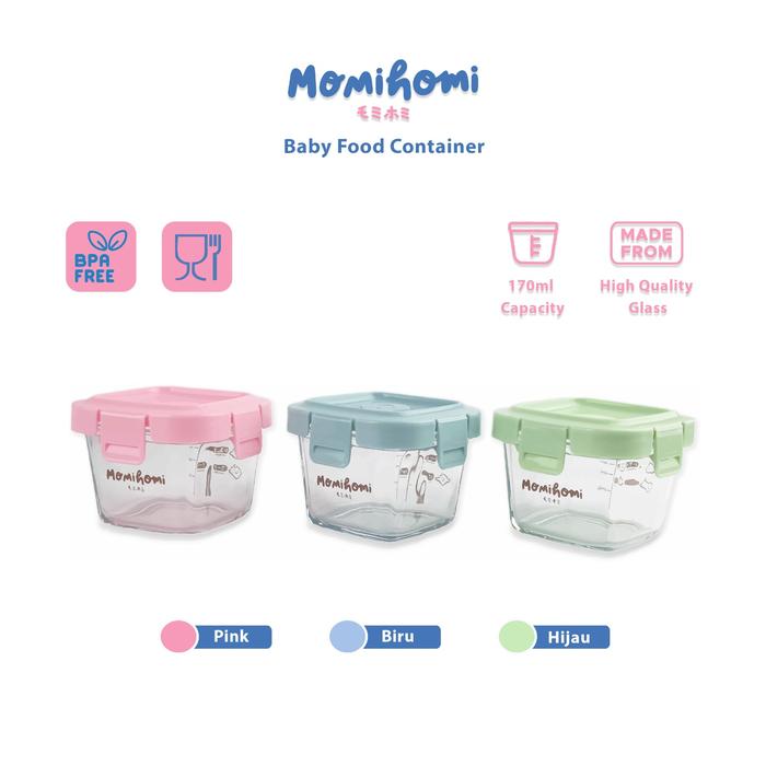 Momi Homi Baby Food Container Glass Tempat Penyimpanan Makanan Bayi Mpasi Food Container Bahan Kaca 170Ml Tahan Panas Pi