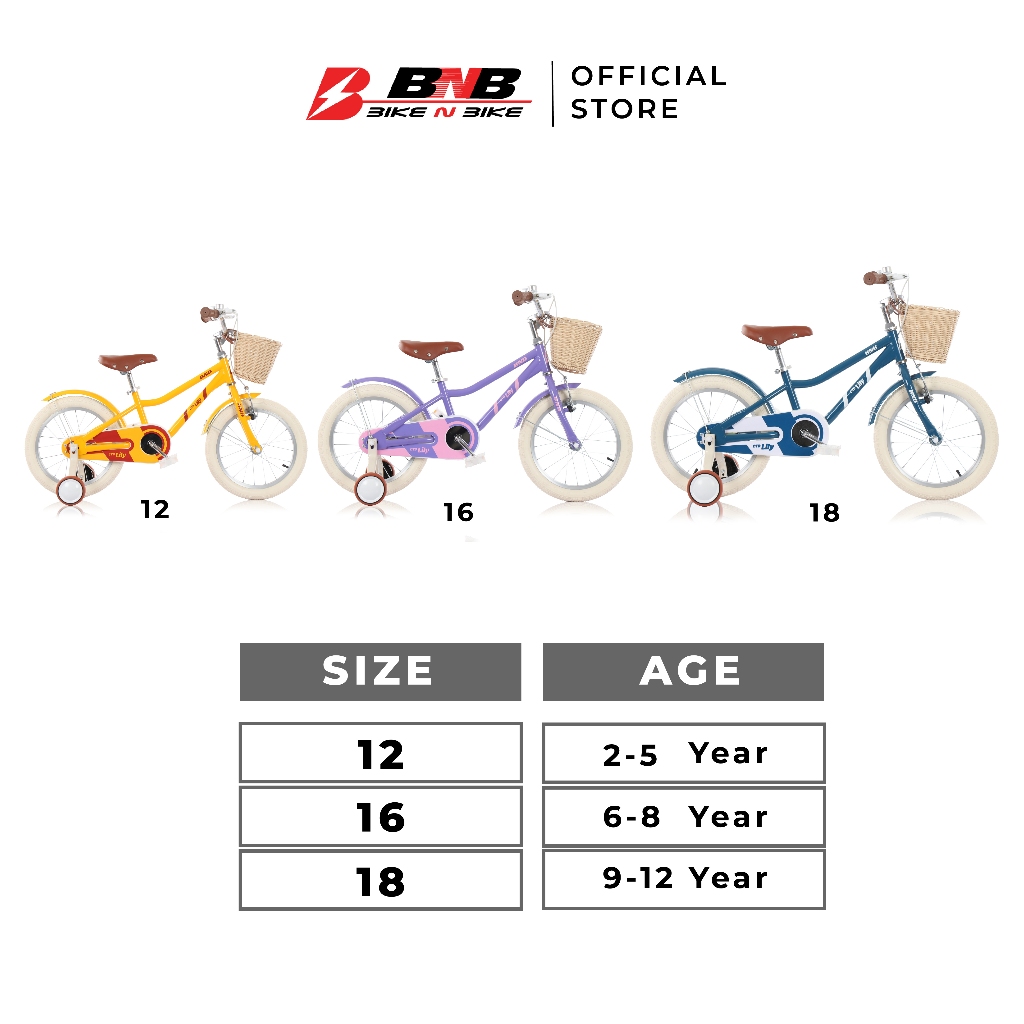 BIKENBIKE - LIMITED EDITION SEPEDA ANAK PEREMPUAN BNB CITY BIKE LILY SIZE 12 16 18 INCH BAN 2.125