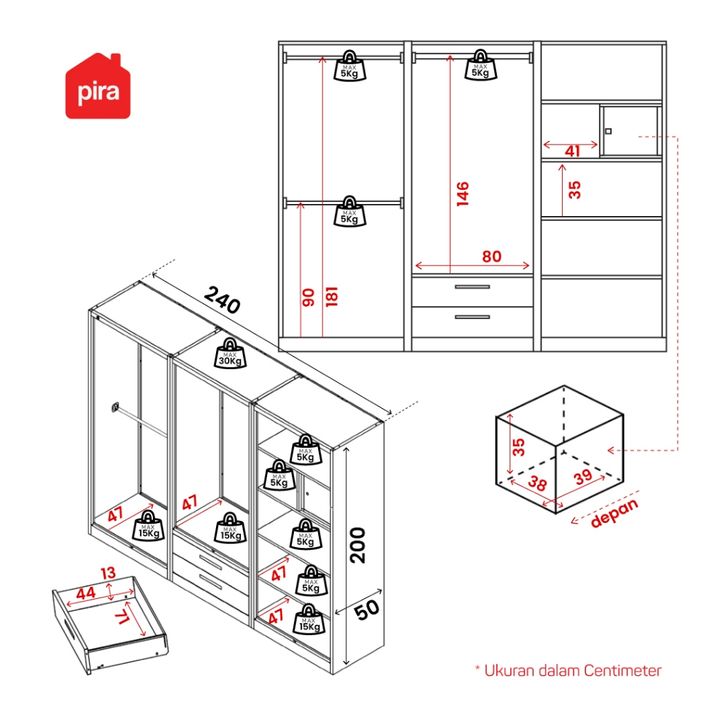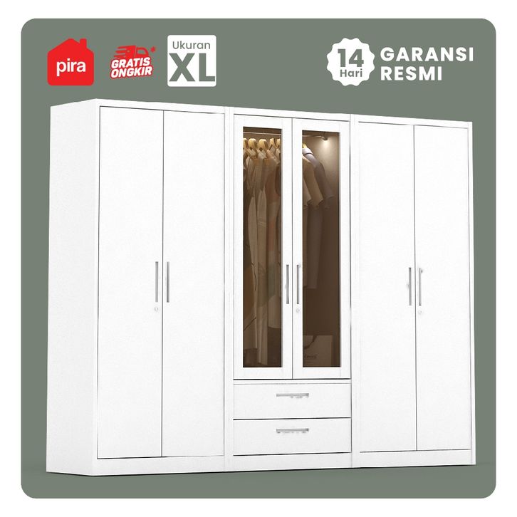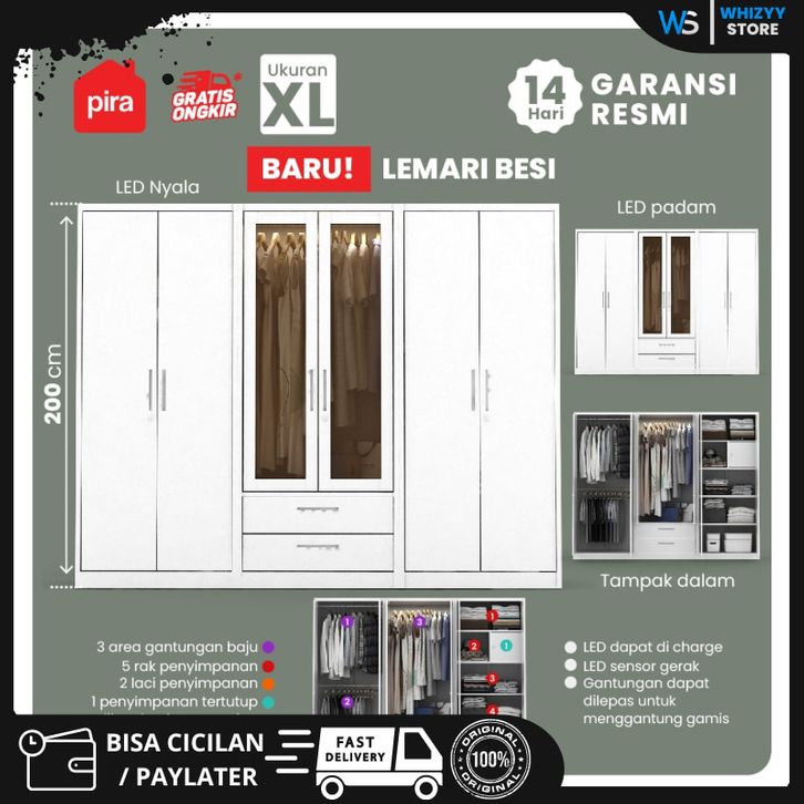 PIRA METROPOLIS STEEL 6P FGD MWD Lemari Pakaian Besi 6 Pintu dengan Laci dan LED