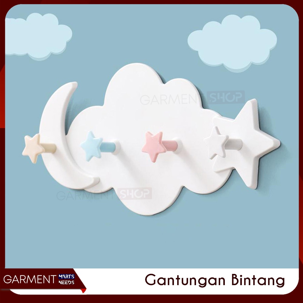 GBINTANG - Gantungan Baju Karakter Bintang Kait Tempel Pintu Dinding Kamar Hook Perekat Tempat Penyimpanan Serbaguna Aes
