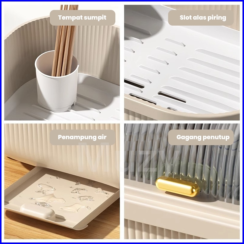 Muzy Rak Piring Plastik Rak Pengering Piring Tempat Alat Makan Rak Pengering Mangkok Sendok Rak Dapur Rak Piring Wastafe