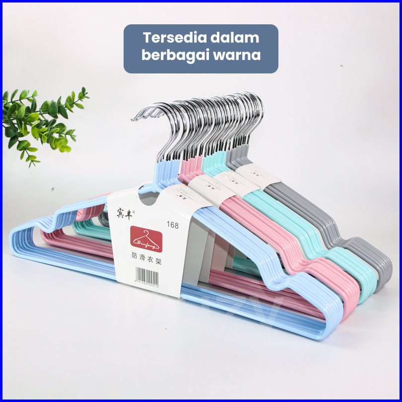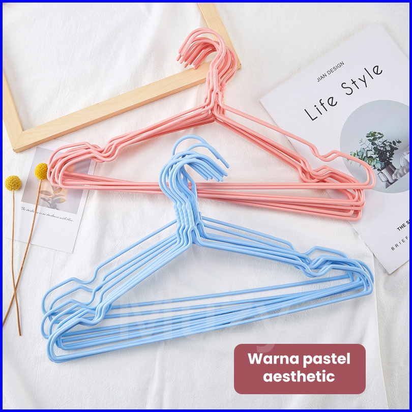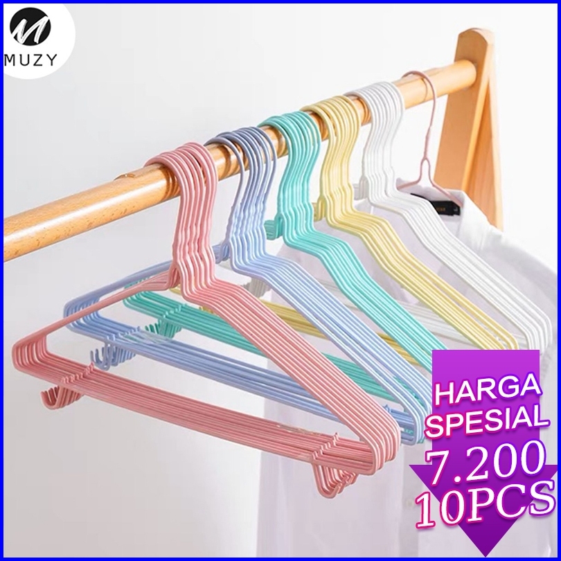 Muzy Gantungan Baju Stainlees Steel 10pcs Hanger Baju Dewasa Hanger Baju Anti Karat Hanger Baju Warna Pastel Gantungan S