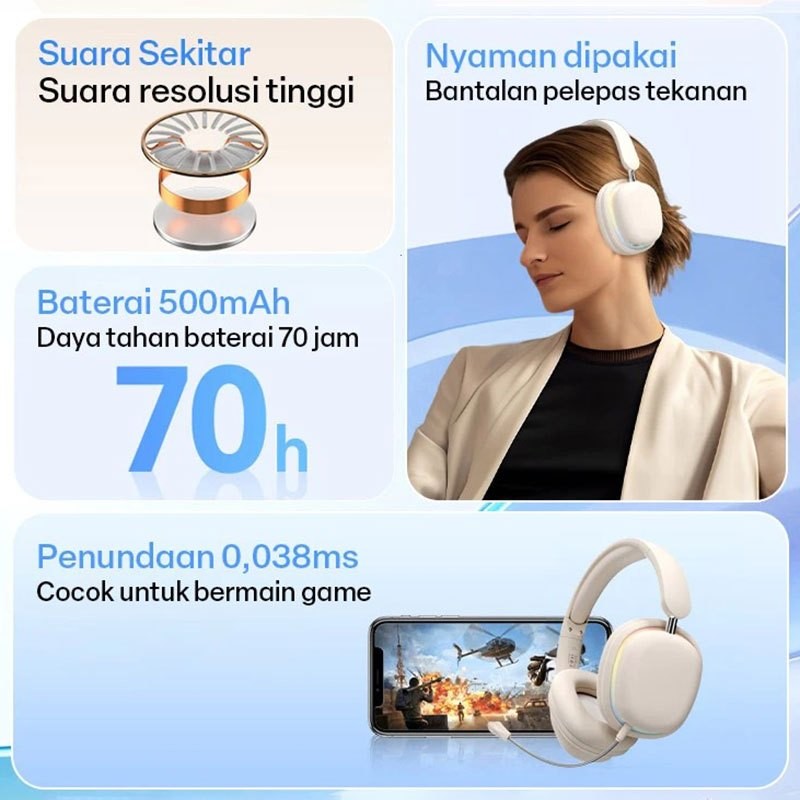 (TERMURAH) Headset Gaming Bluetooth 5.3 Wireless Headphone RGB Light With Noise Canceling Mic Earphone