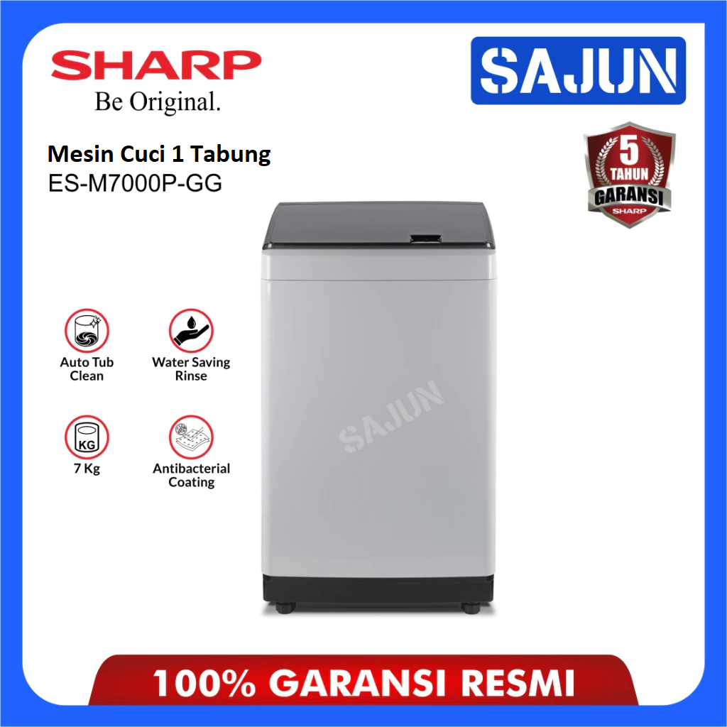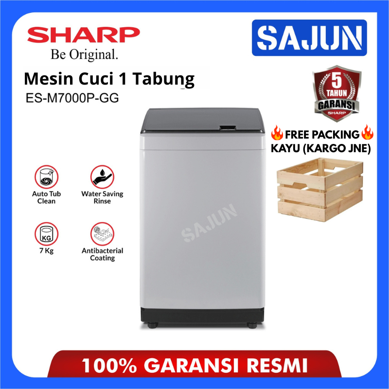 [FREE PACKING KAYU] Sharp Mesin Cuci 1 Tabung 7KG ES-M7000P-GG Top Loading 7KG
