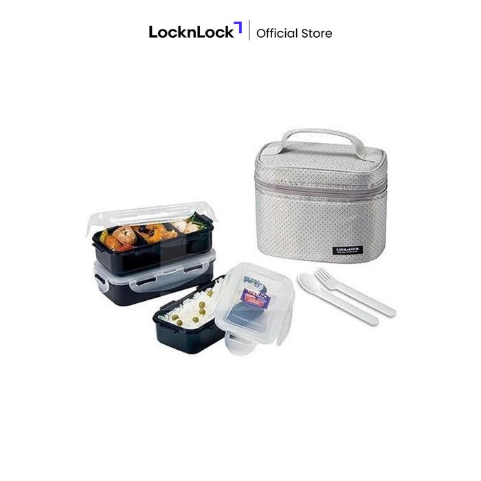 FLASH SALE LOCKNLOCK LUNCH BOX SET WITH GRAY BAG SPOON ORKHPL754DG