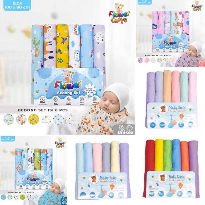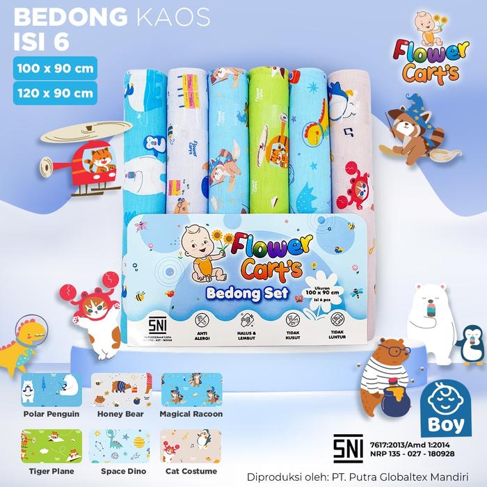 MOMS_Bedong print kaos Flower 100x90 isi 6psc bedong bayi soft cotton dapat dicuci dengan mesin