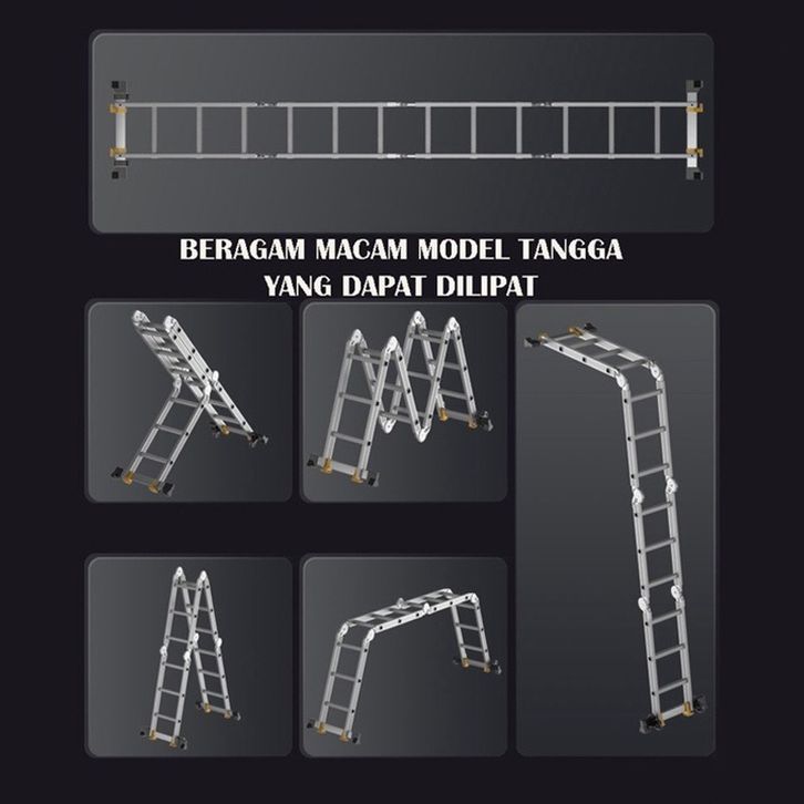 Tangga Lipat Aluminium Teleskopik 3.7m/4.7m/5.8m meter Tangga Aluminium Lipat Empat Tangga Lipat Multifungsi