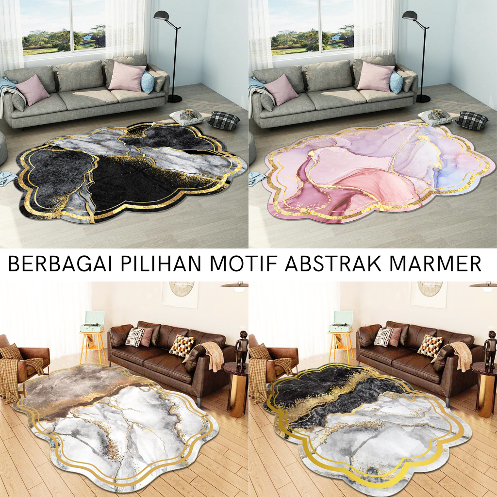 Karpet Ruang Tamu Import Polyster Silk Karet Glossy Abstrak Marmer Clasic Aesthetic Vintage Tebal Premium Murah Terlaris