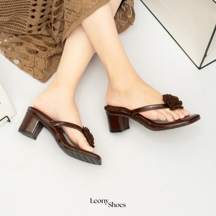 PROMO TERBATAS LEONYCYNTIA HEELS JEPIT BUNGA WANITASANDAL TINGGI HAK TAHU 5 CMHITAM 37
