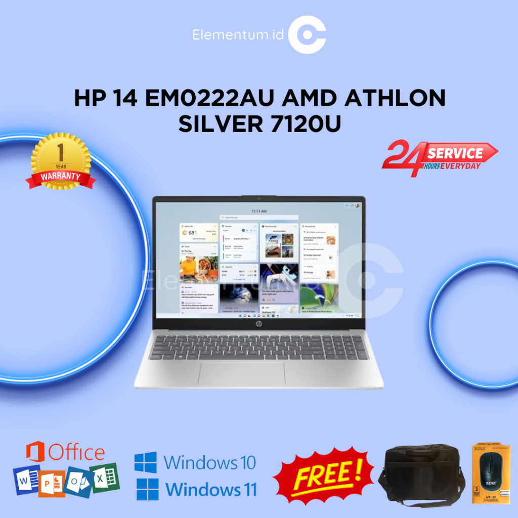 LAPTOP HP 14 EM0222AU AMD ATHLON SILVER 7120U | RAM 8GB SSD 512GB 14.0" FHD BACKLIT KEYBOARD
