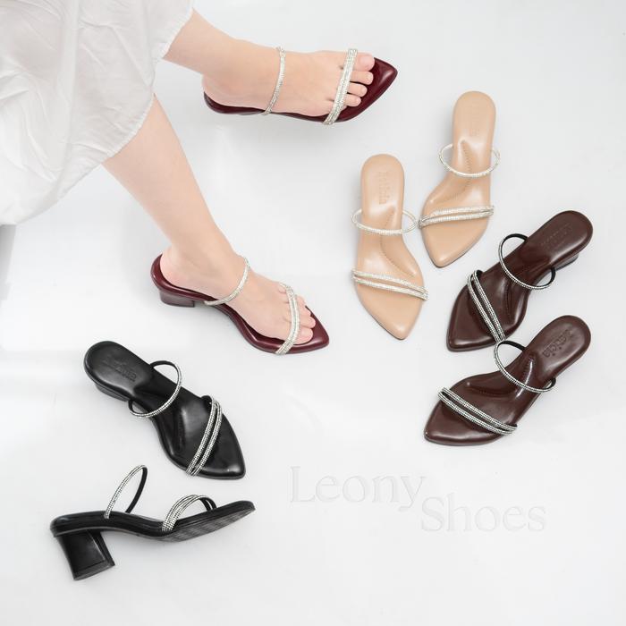 PROMO TERBATAS LEONY GISELLE SANDAL HEELS WANITA 5 CMSENDAL HAK TINGGI CEWE TALI DIAMONDHITAM 37