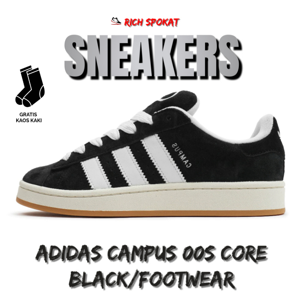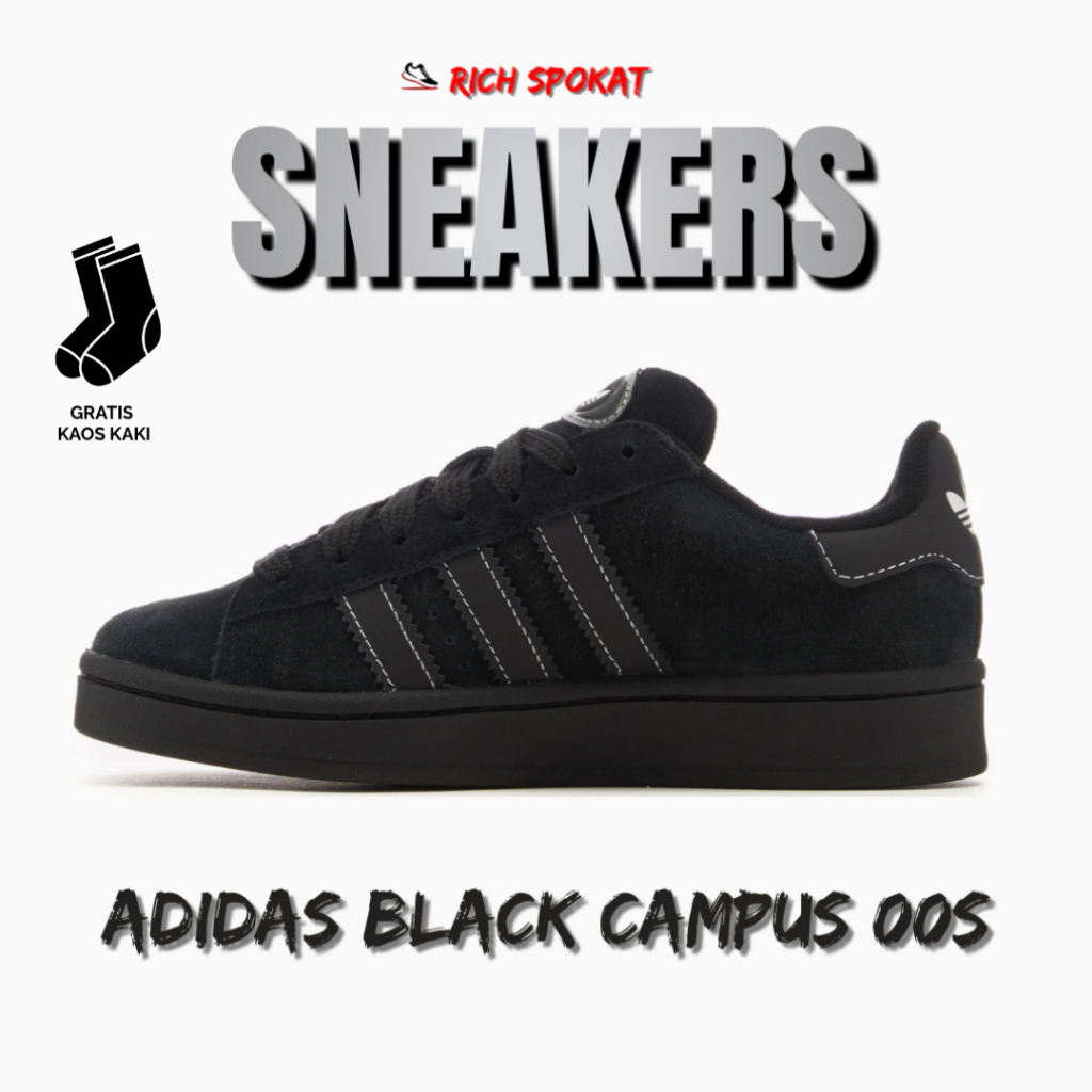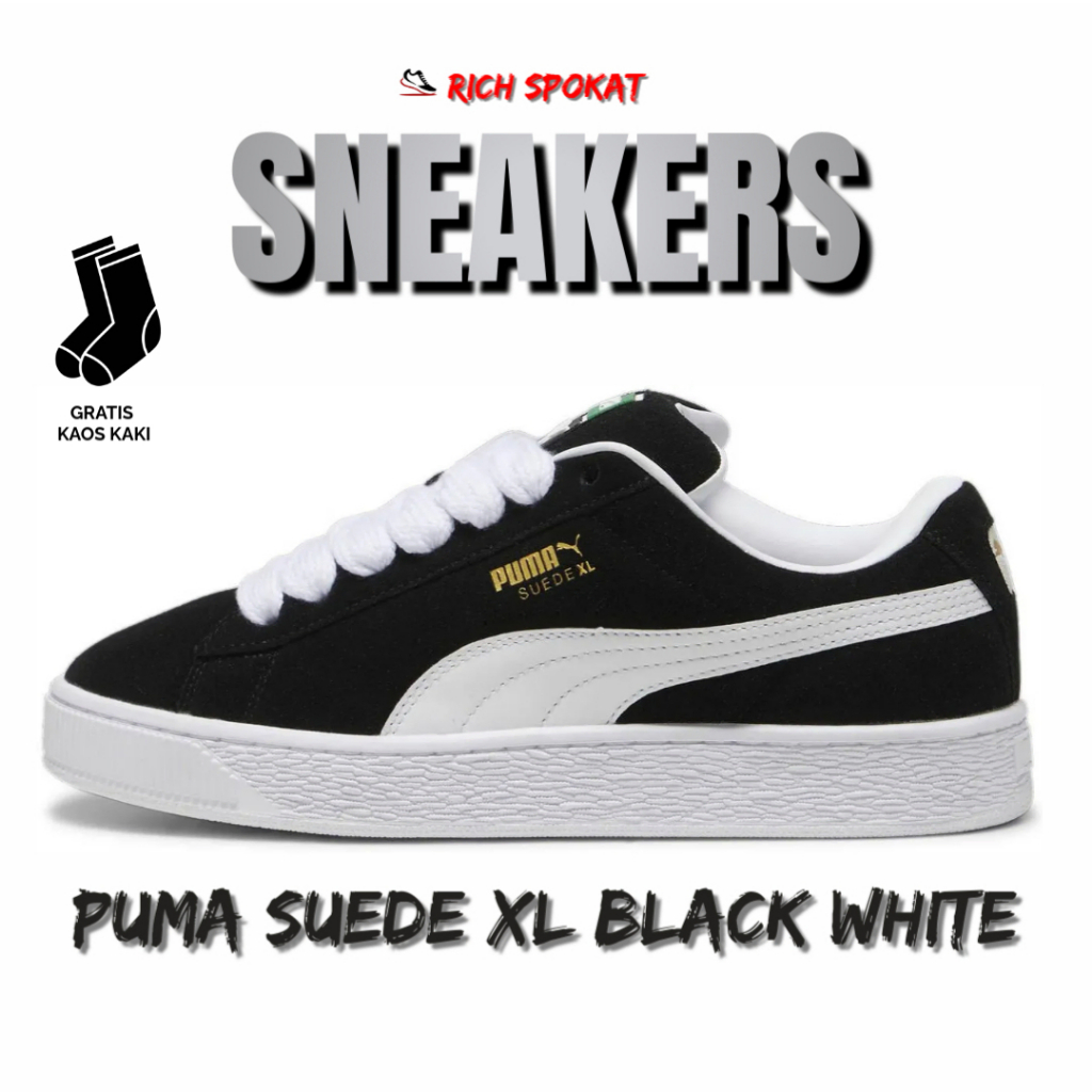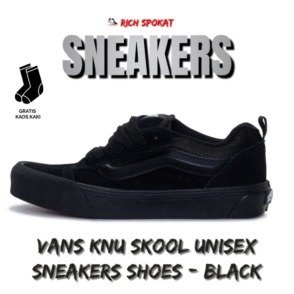 Premium Suede XL Tali Gemuk Pria Wanita Hitam Polos Sepatu Sekolah Full Black Skena Ootd Trandy