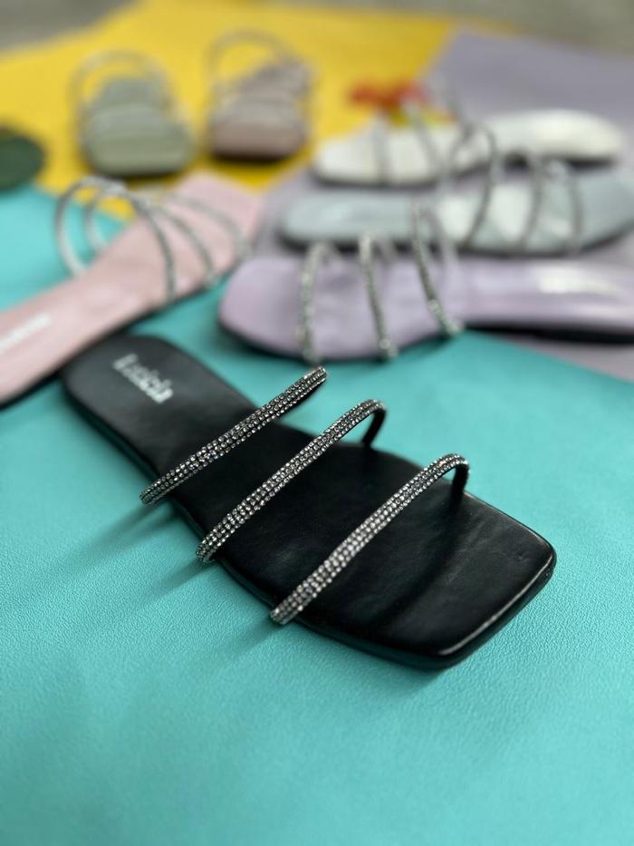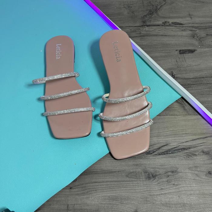 PROMO TERBATAS LEONYSANDAL FLAT WANITA TALI DIAMONSANDAL SLIP ON KASUALHITAM 36